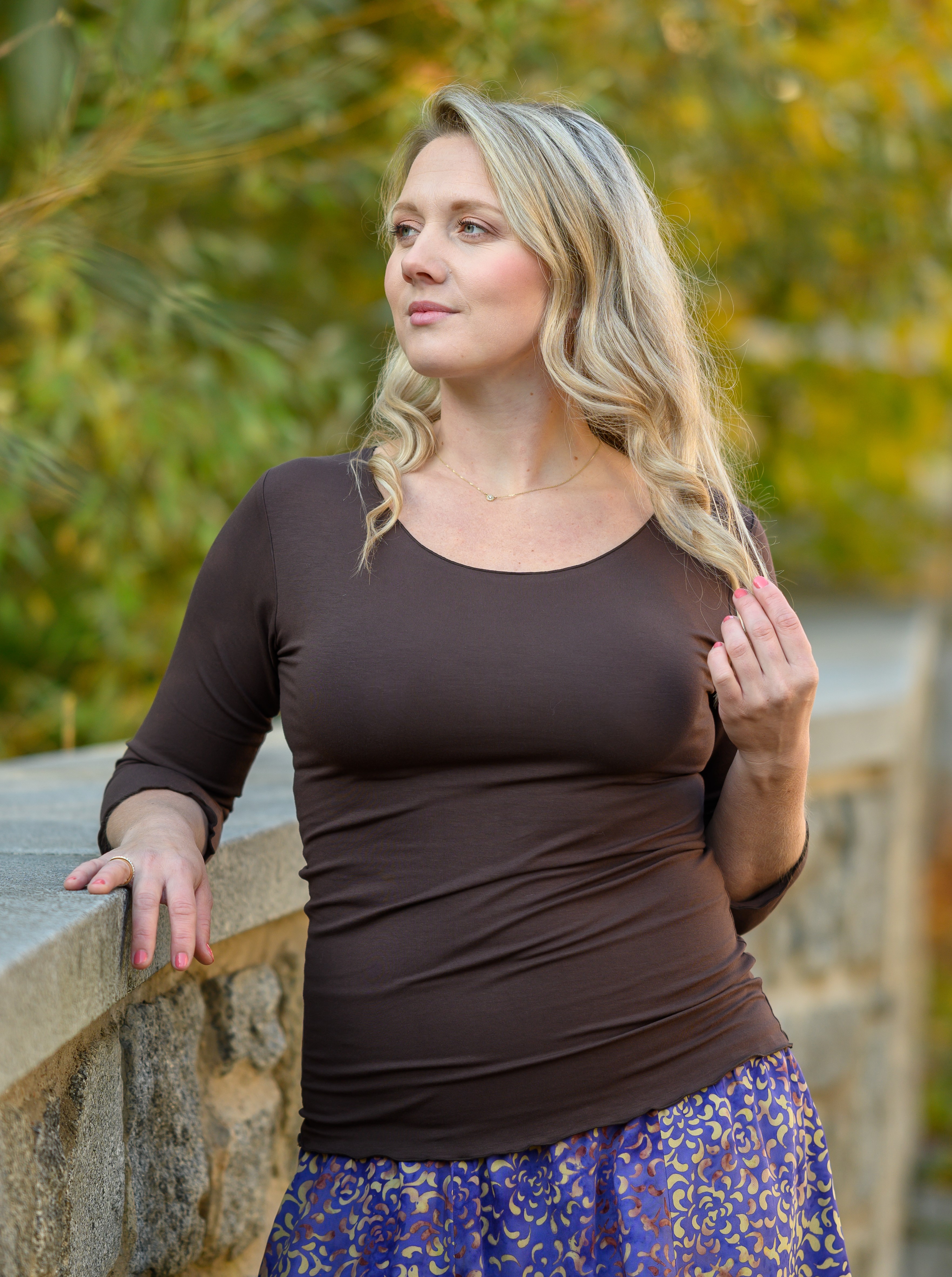 Keira – minimalistické jednobarevné tričko bez potisku s ¾ rukávem.