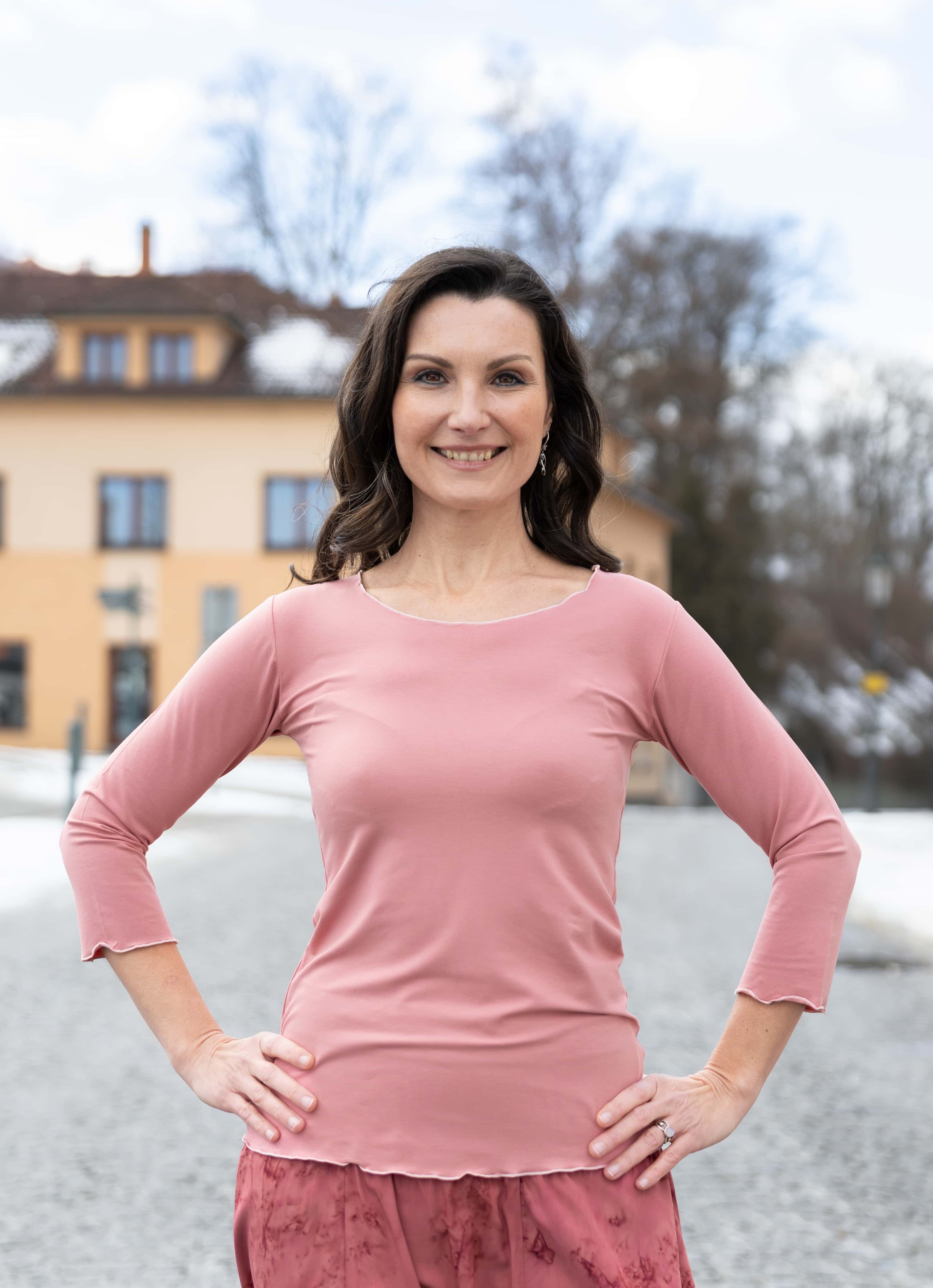 Keira – minimalistické jednobarevné tričko bez potisku s ¾ rukávem.