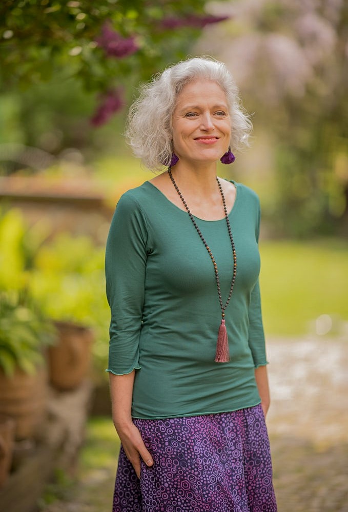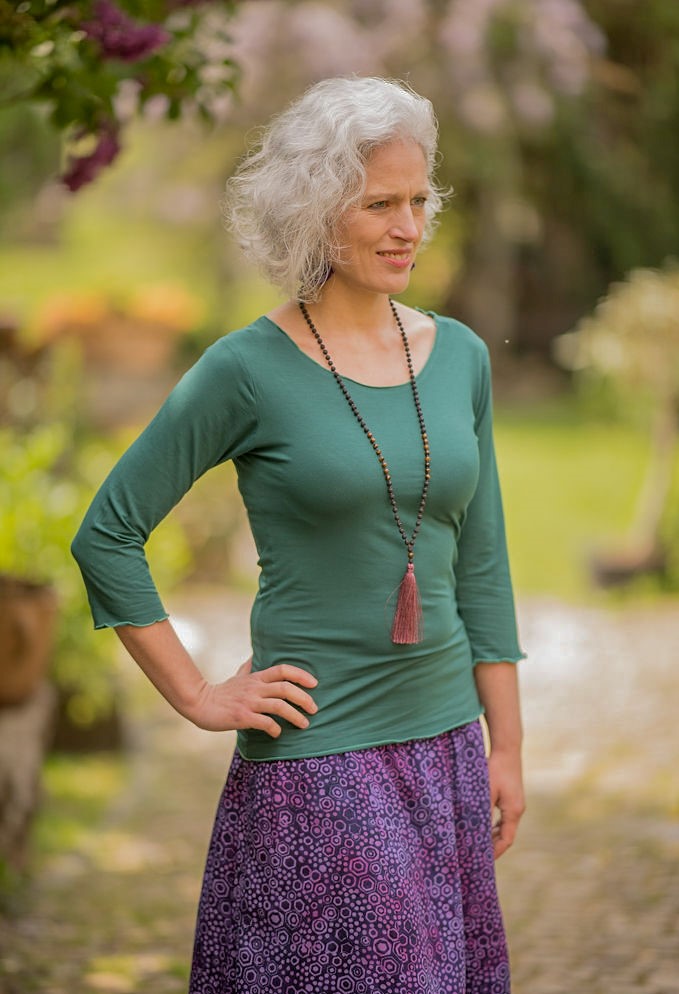 Keira – minimalistické jednobarevné tričko bez potisku s ¾ rukávem.