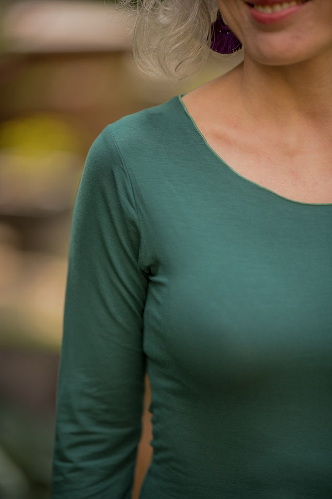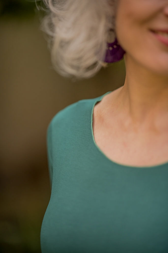 Vyzkoušejte si také, jak vám bude tričko slušet výstřihem dozadu. Na zádech zvýrazní linii šíje a vepředu vytvoří elegantní lodičkový výstřih.