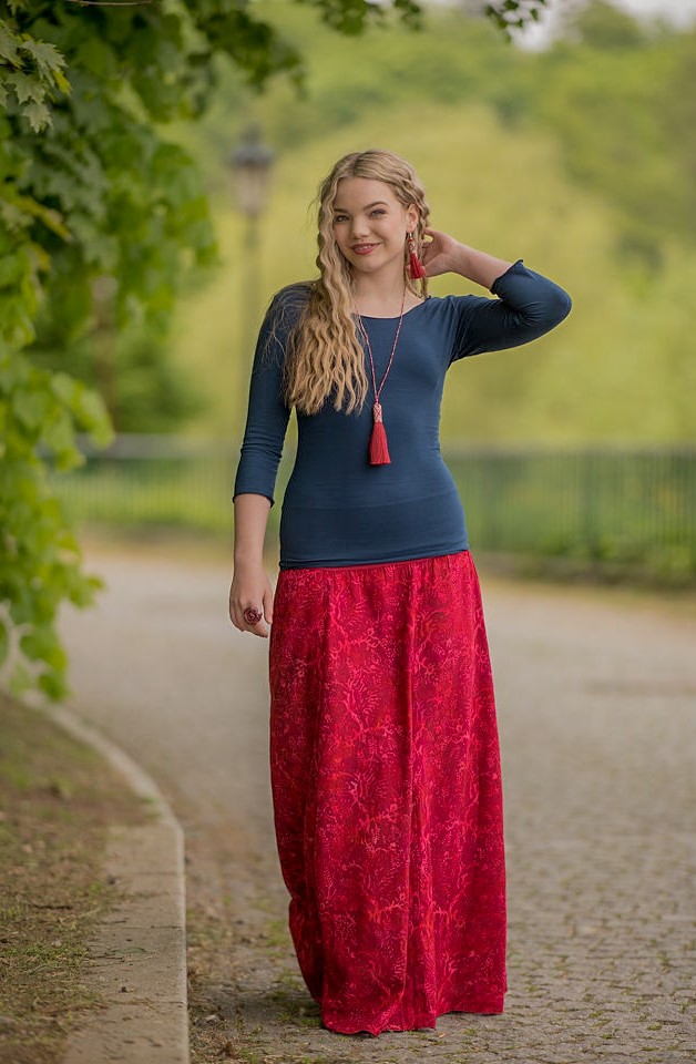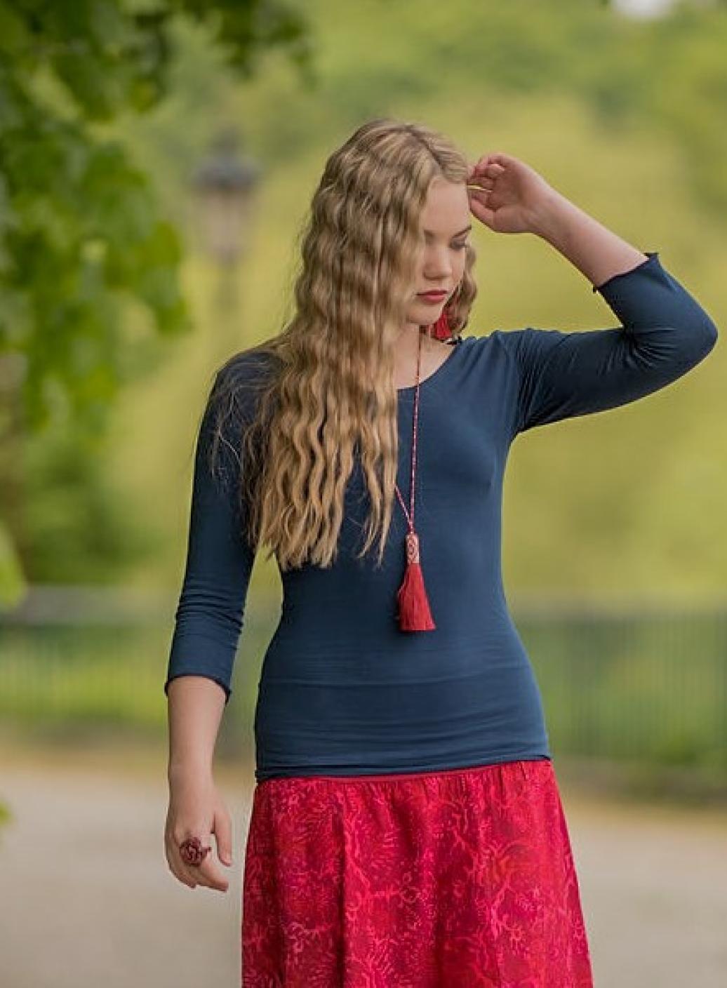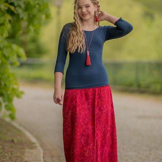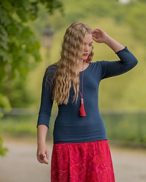 Triko Keira je vyrobené z příjemné viskózy, stejně jako naše braletky, legíny, trika s krátkým rukávem a lemy u pohodlných dlouhých i krátkých sukní.