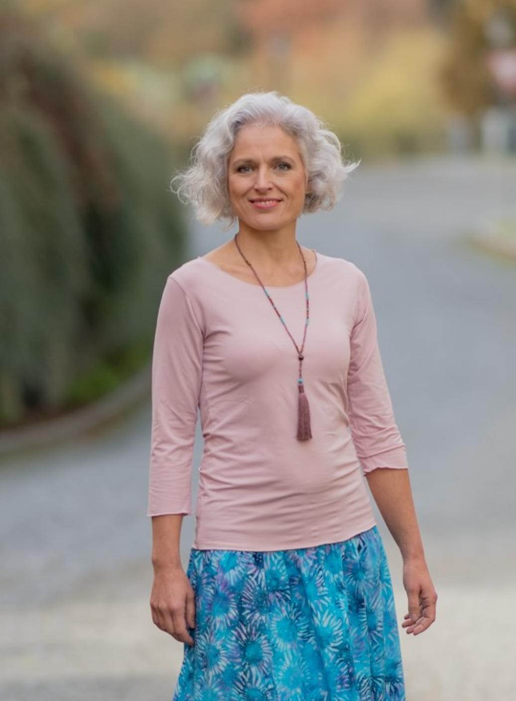 Keira – minimalistické jednobarevné tričko bez potisku s ¾ rukávem.