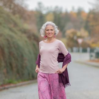 Triko Keira je vyrobené z příjemné viskózy, stejně jako naše braletky, legíny, trika s krátkým rukávem a lemy u pohodlných dlouhých i krátkých sukní.