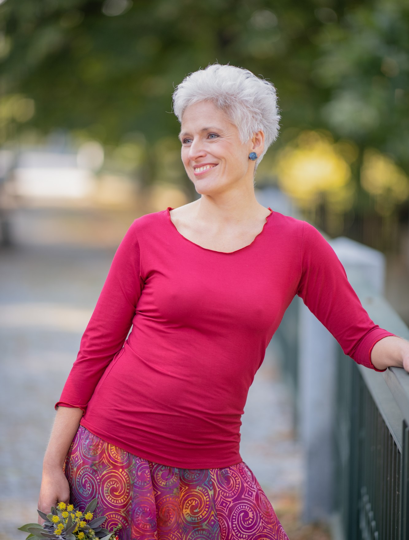 Keira – minimalistické jednobarevné tričko bez potisku s ¾ rukávem.