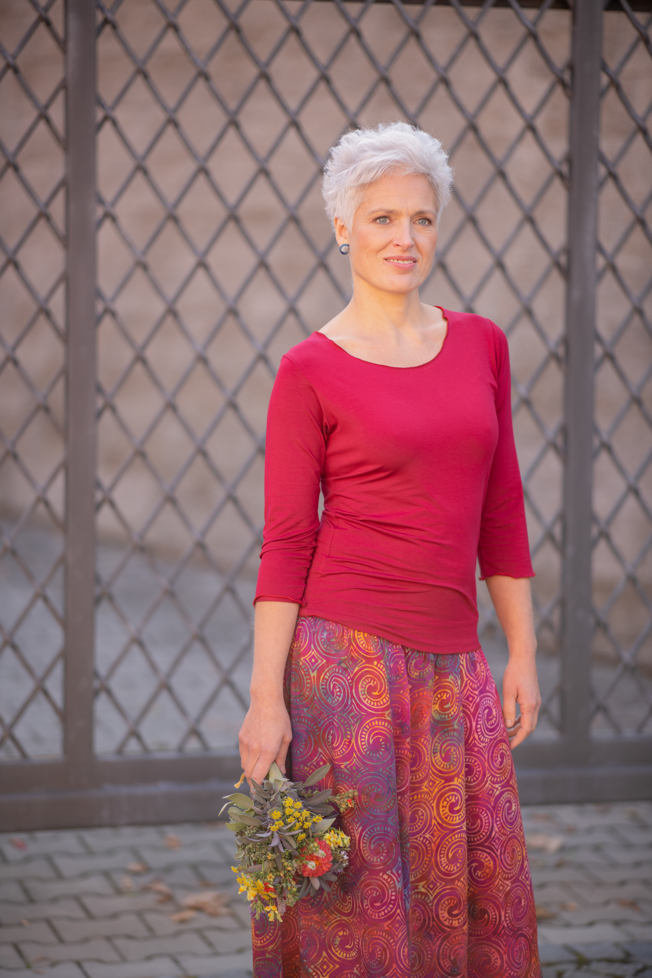 Triko Keira je vyrobené z příjemné viskózy, stejně jako naše braletky, legíny, trika s krátkým rukávem a lemy u pohodlných dlouhých i krátkých sukní.