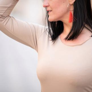 Vyzkoušejte si také, jak vám bude tričko slušet výstřihem dozadu. Na zádech zvýrazní linii šíje a vepředu vytvoří elegantní lodičkový výstřih.