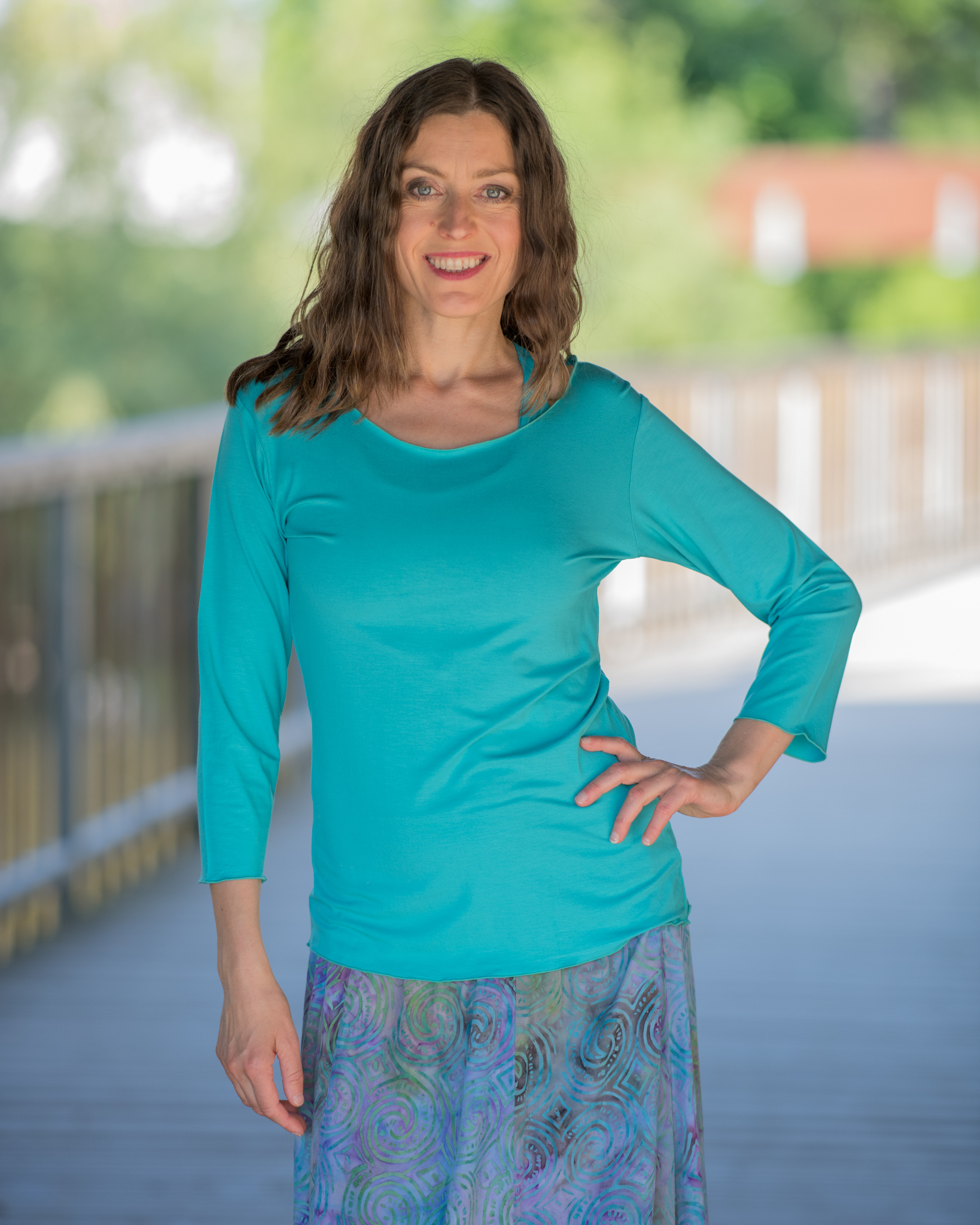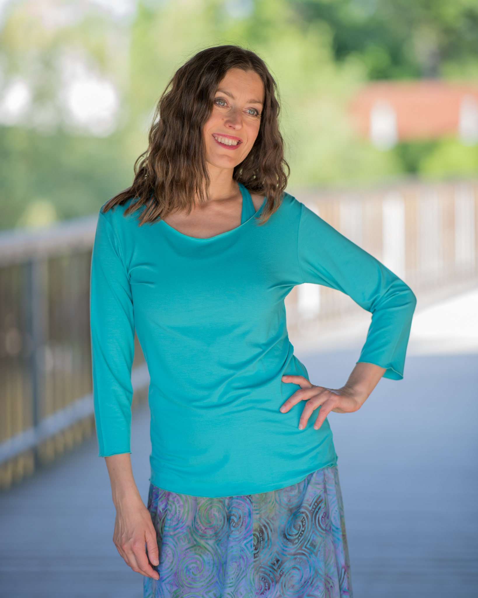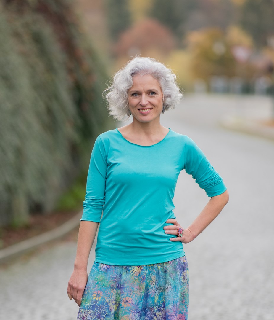 Keira – minimalistické jednobarevné tričko bez potisku s ¾ rukávem.