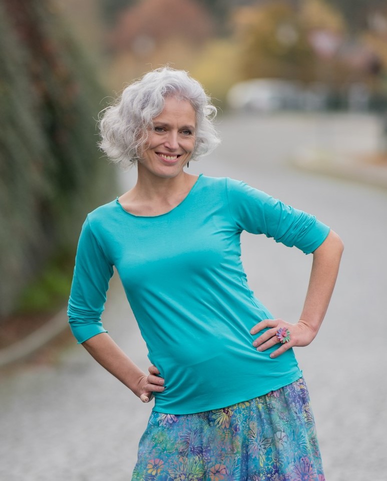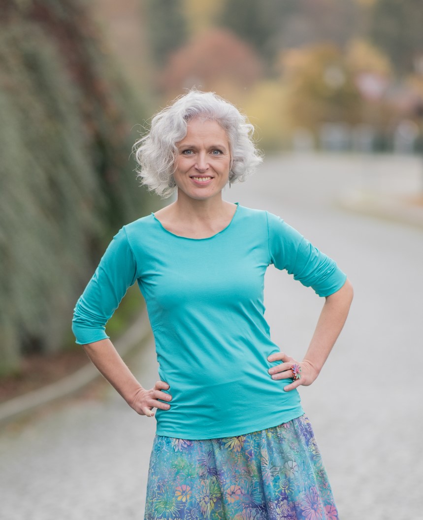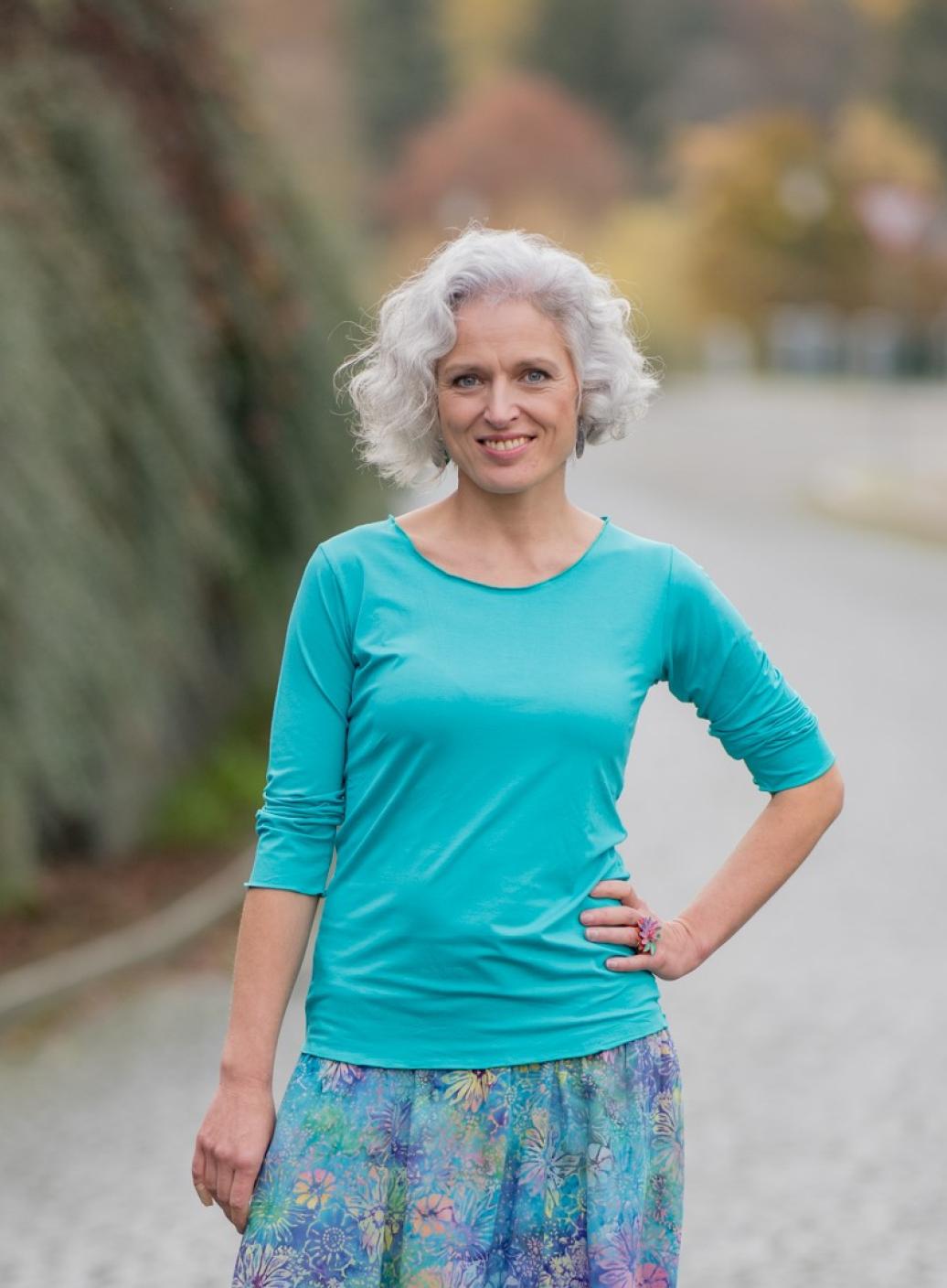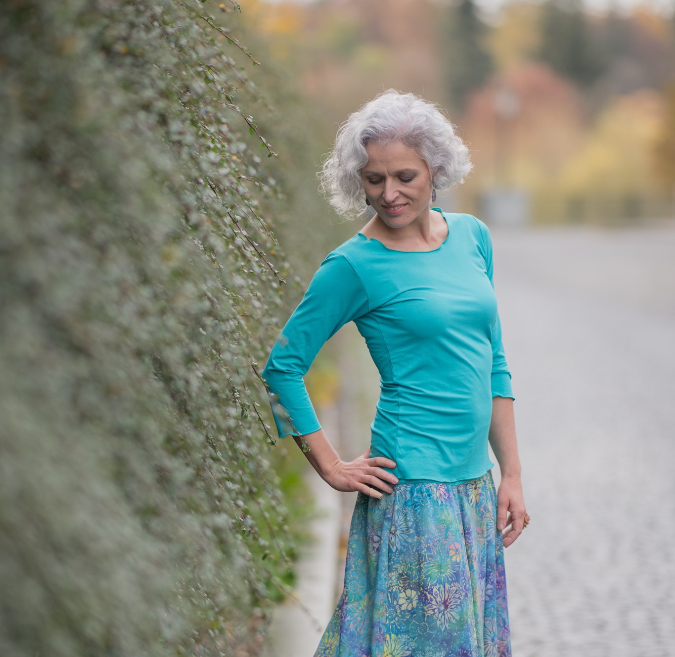 Keira – minimalistické jednobarevné tričko bez potisku s ¾ rukávem.