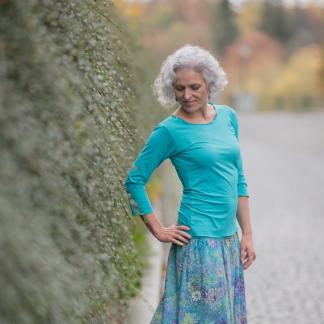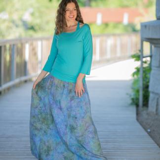 Triko Keira je vyrobené z příjemné viskózy, stejně jako naše braletky, legíny, trika s krátkým rukávem a lemy u pohodlných dlouhých i krátkých sukní.