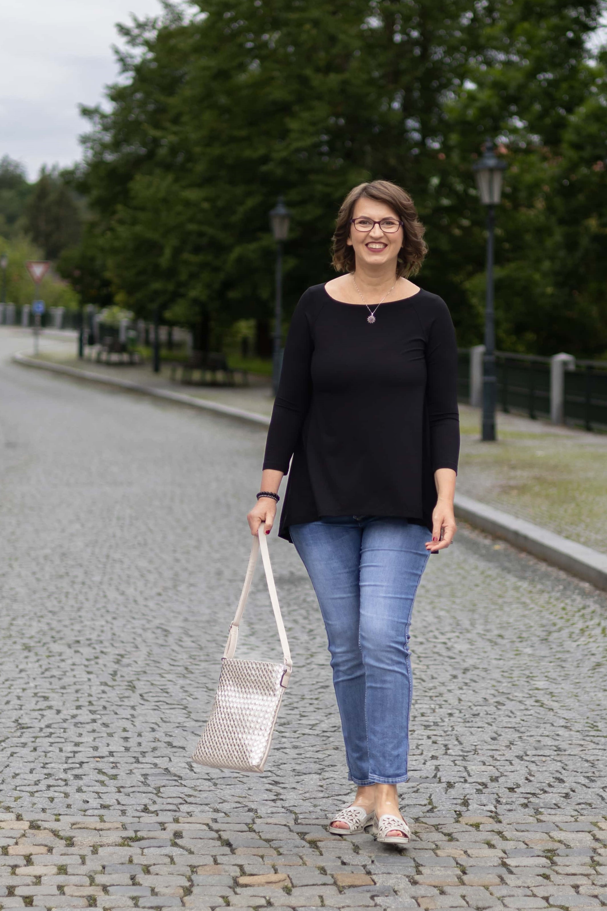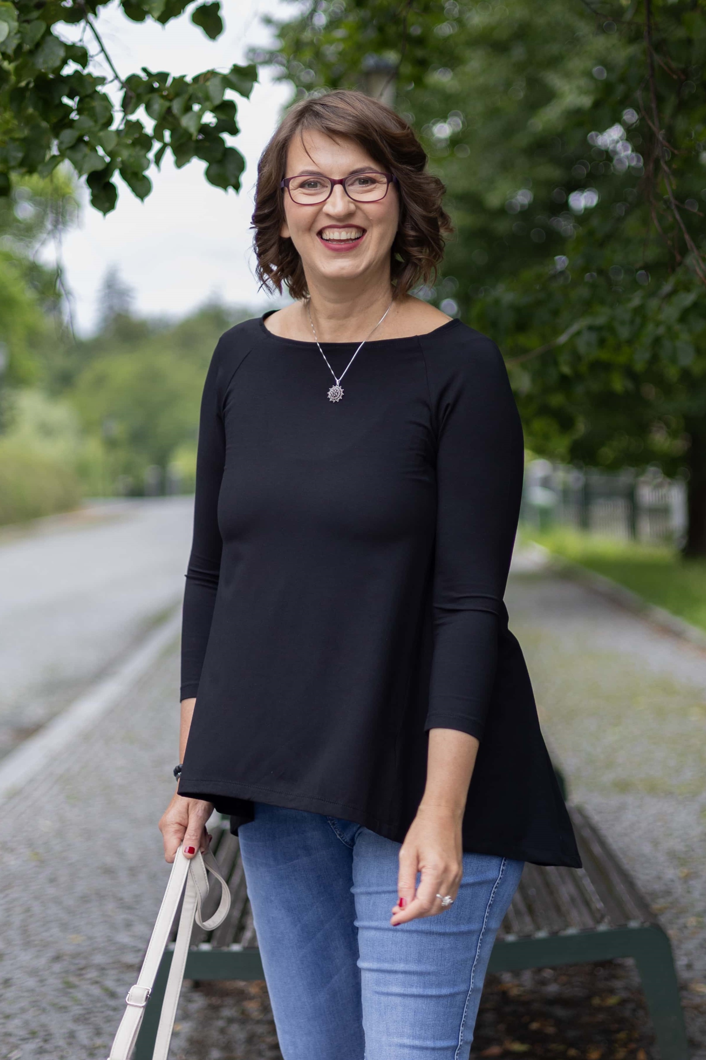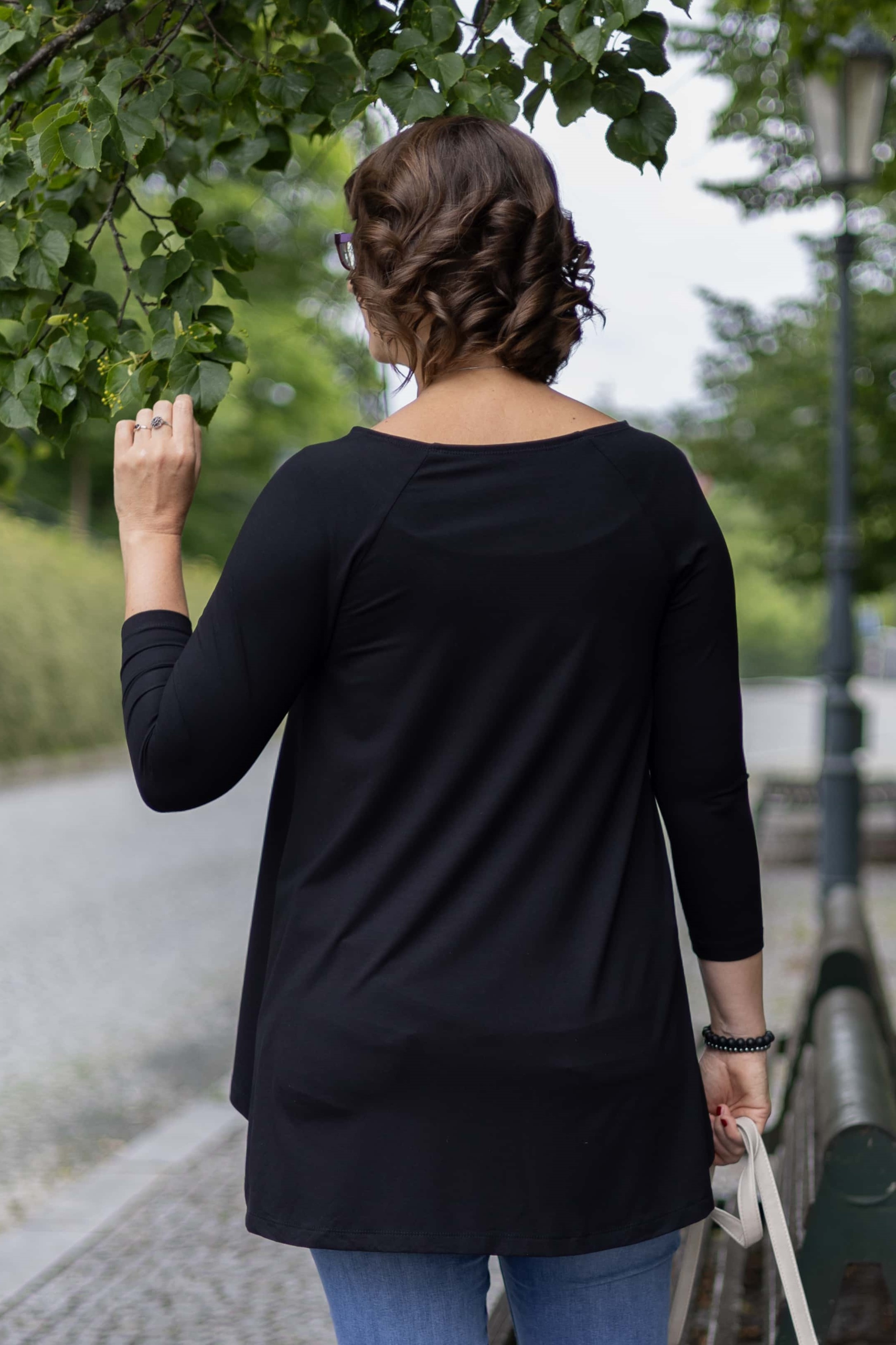 • 3/4 raglánový rukáv a širší kulatý výstřih