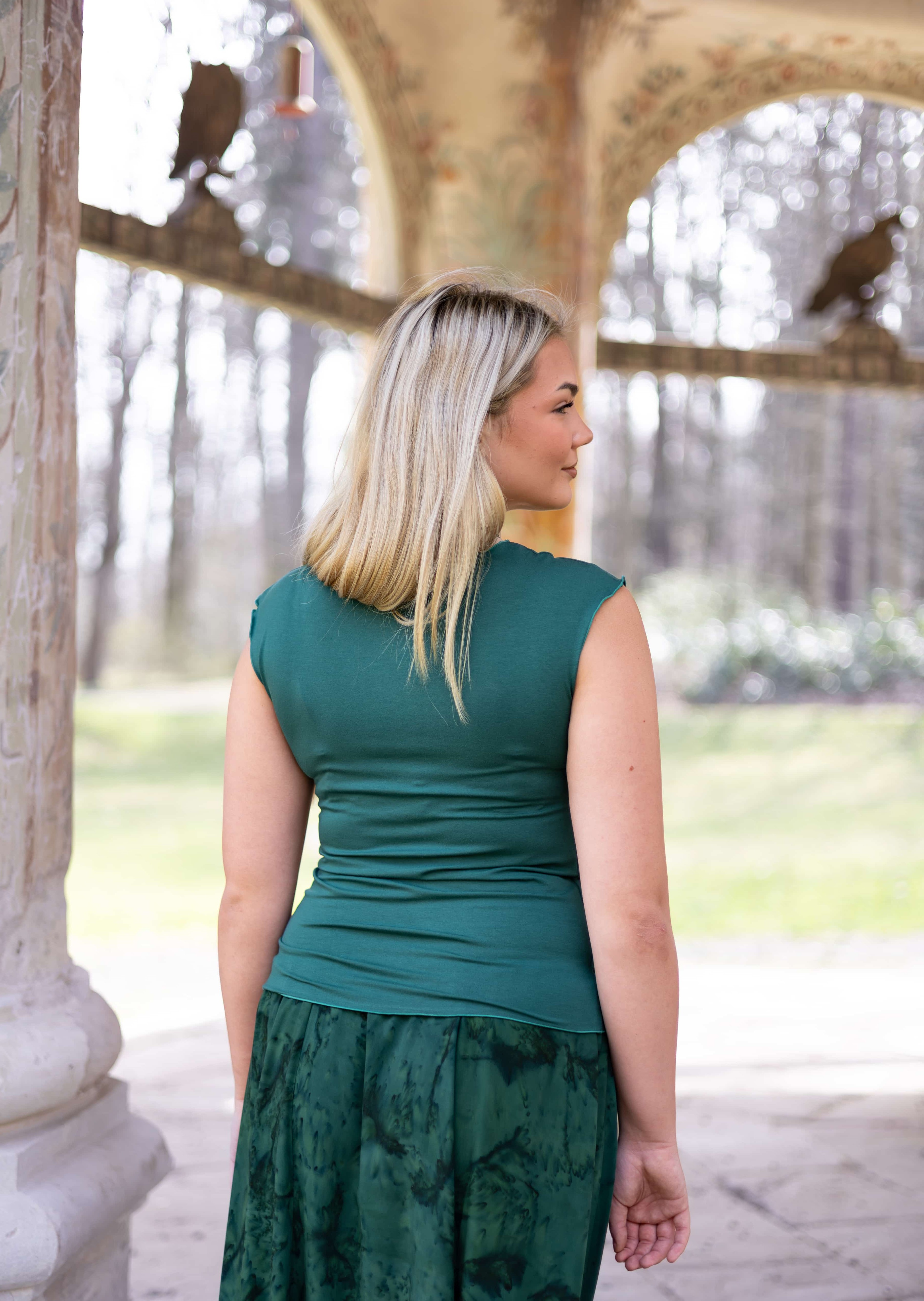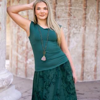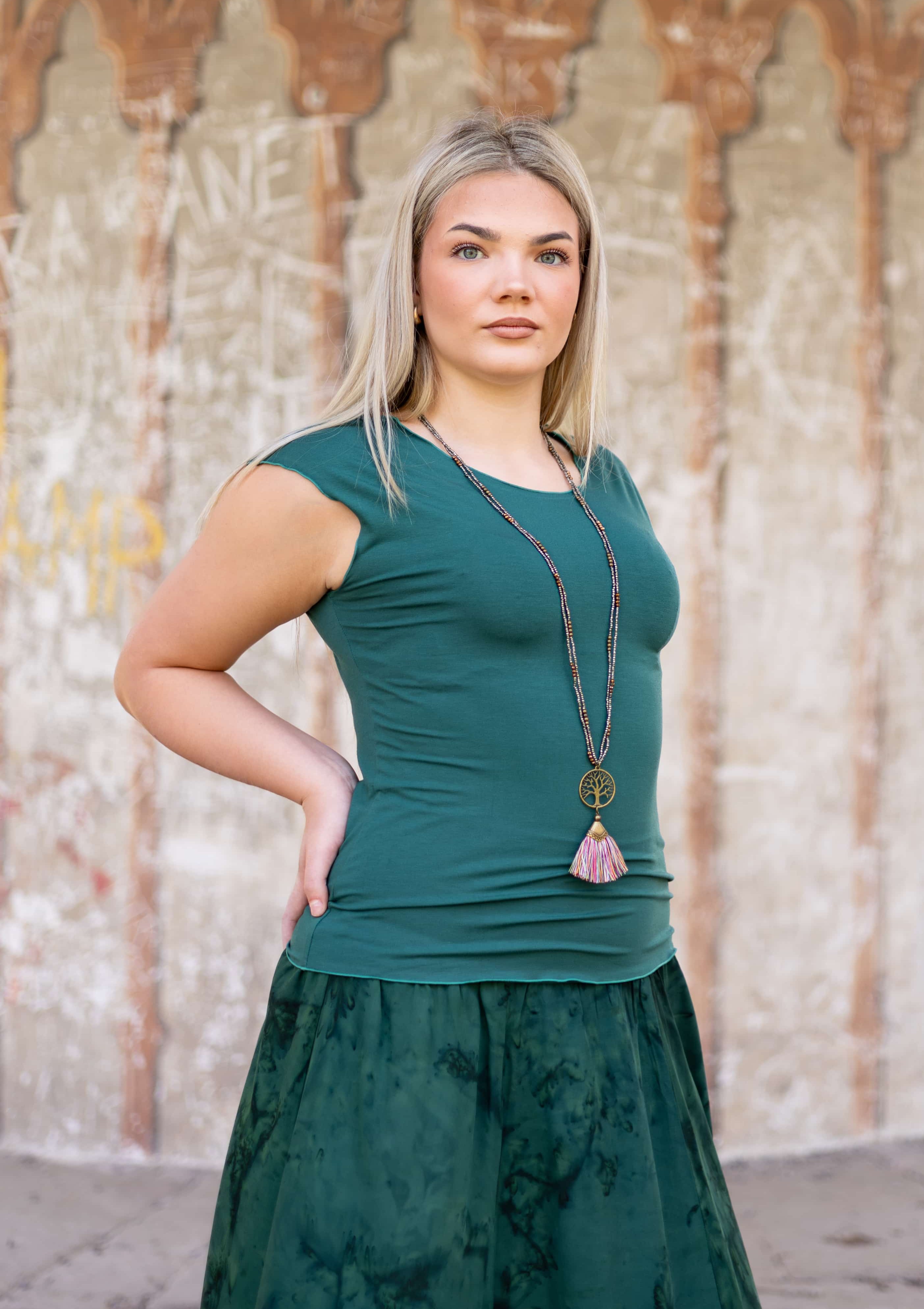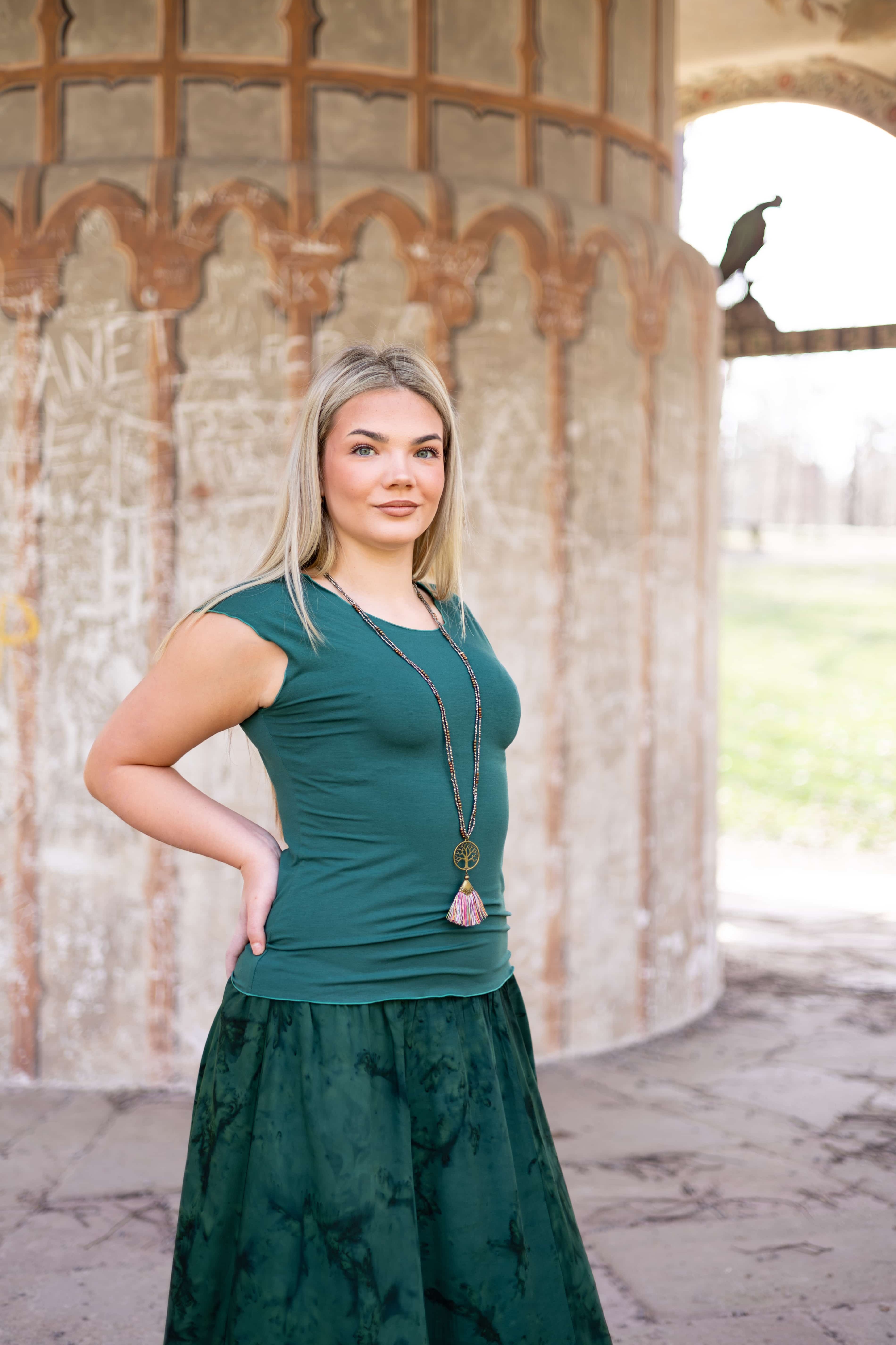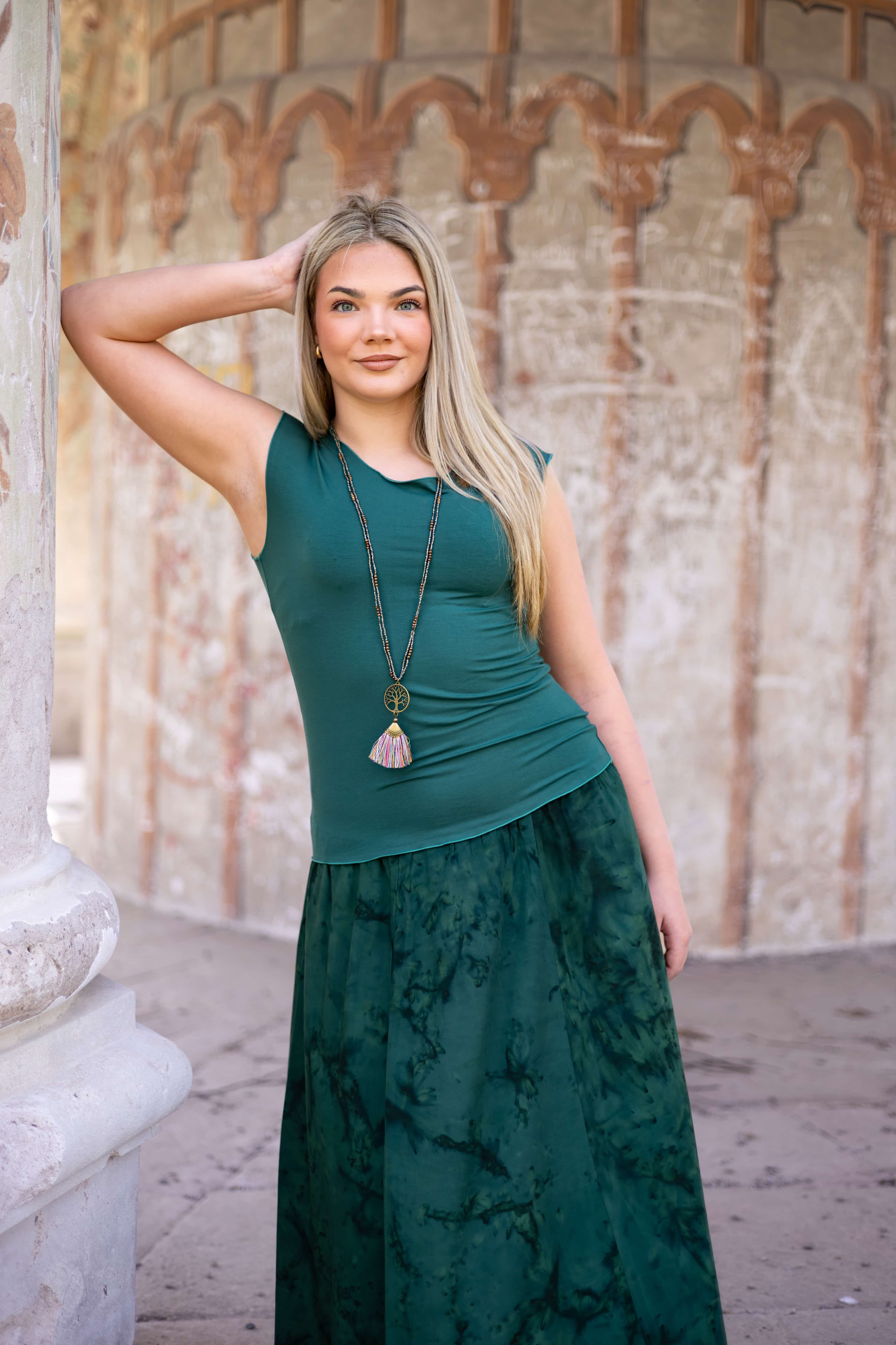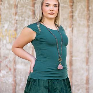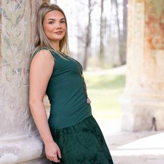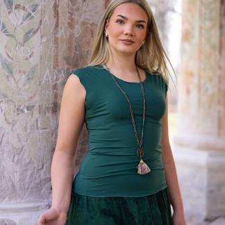 Triko Sunny je vyrobené z příjemné viskózy, stejně jako naše braletky, legíny, trika s ¾ rukávem a lemy u pohodlným dlouhých i krátkých sukní.