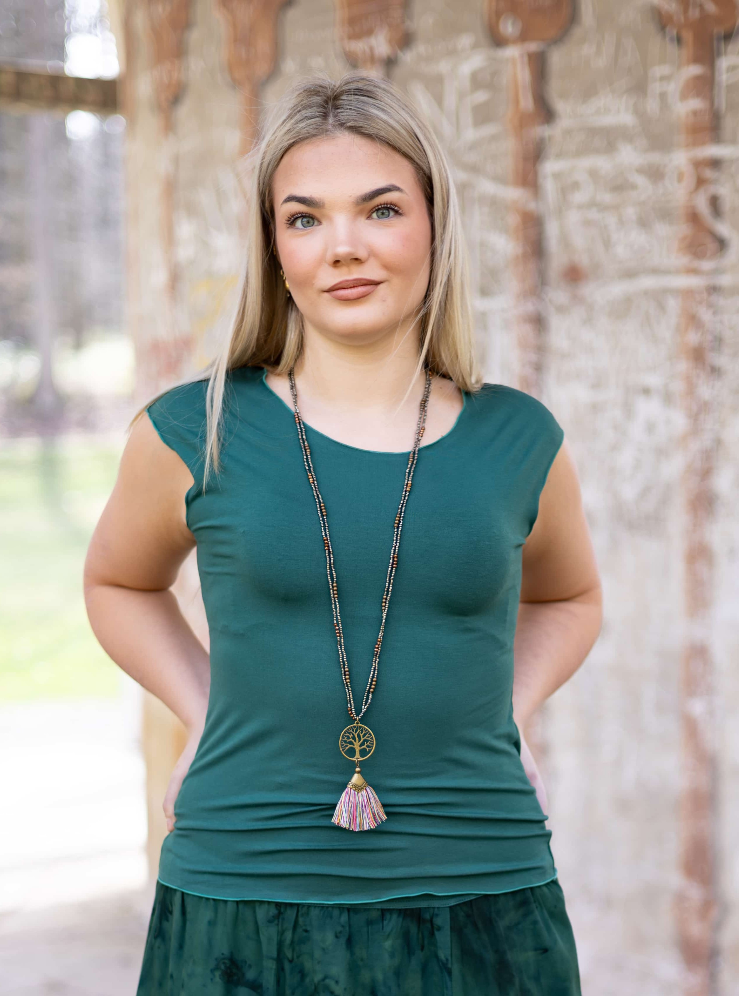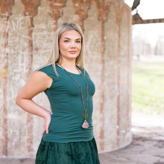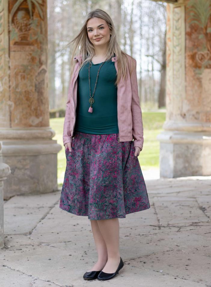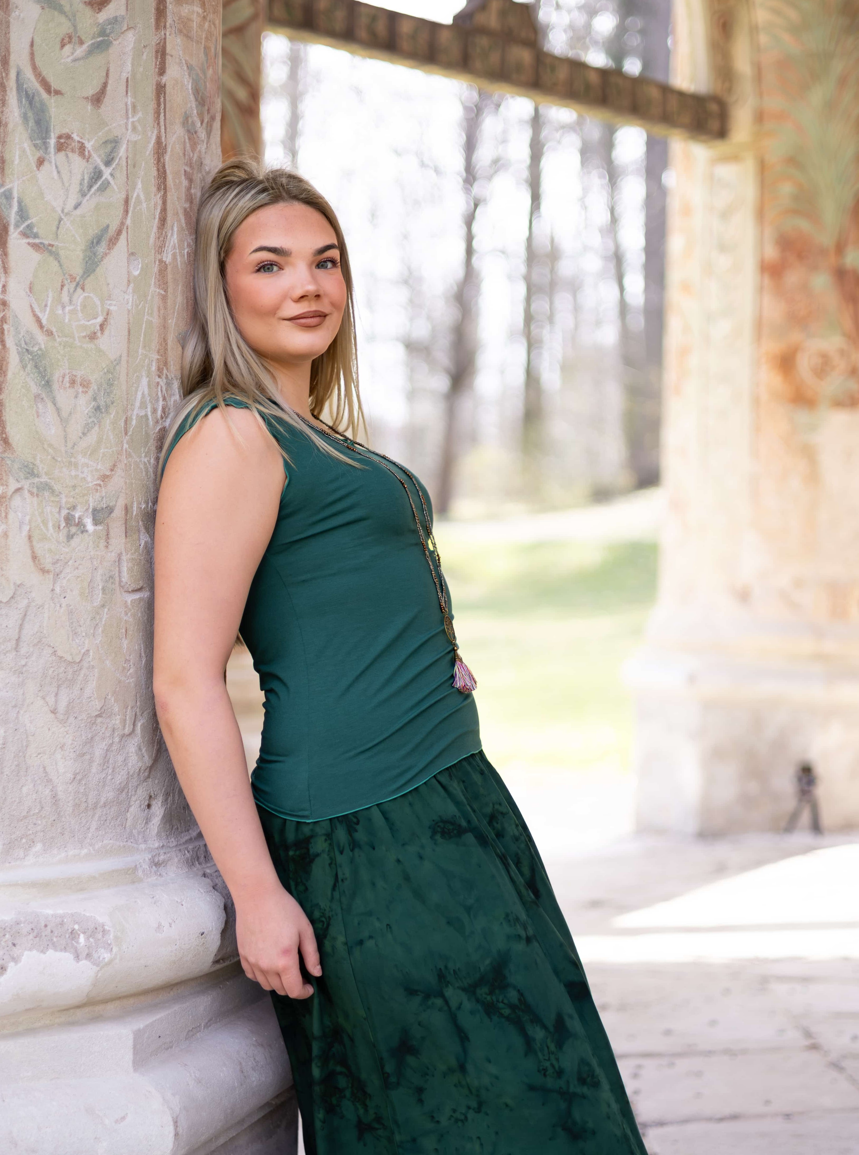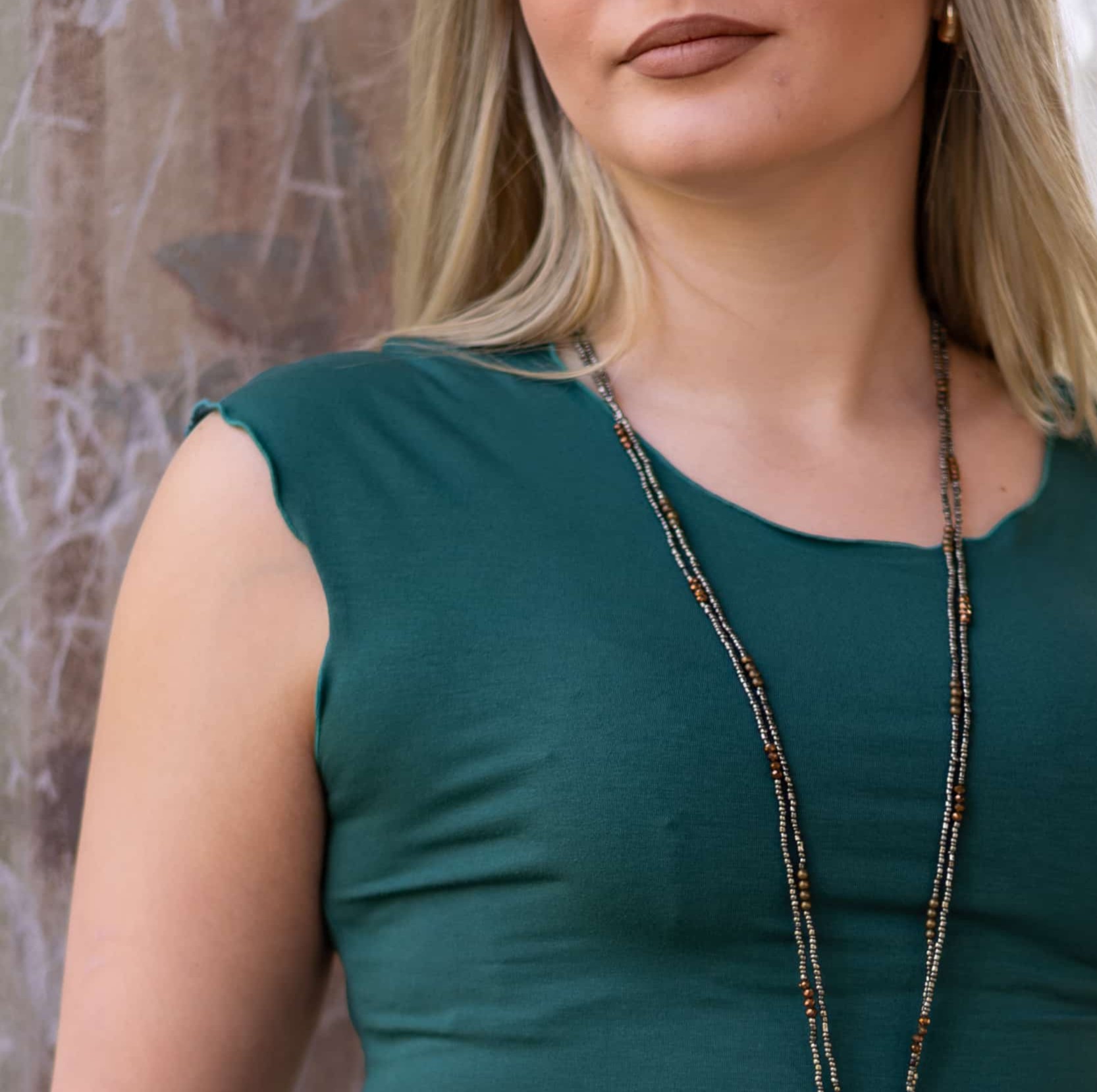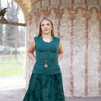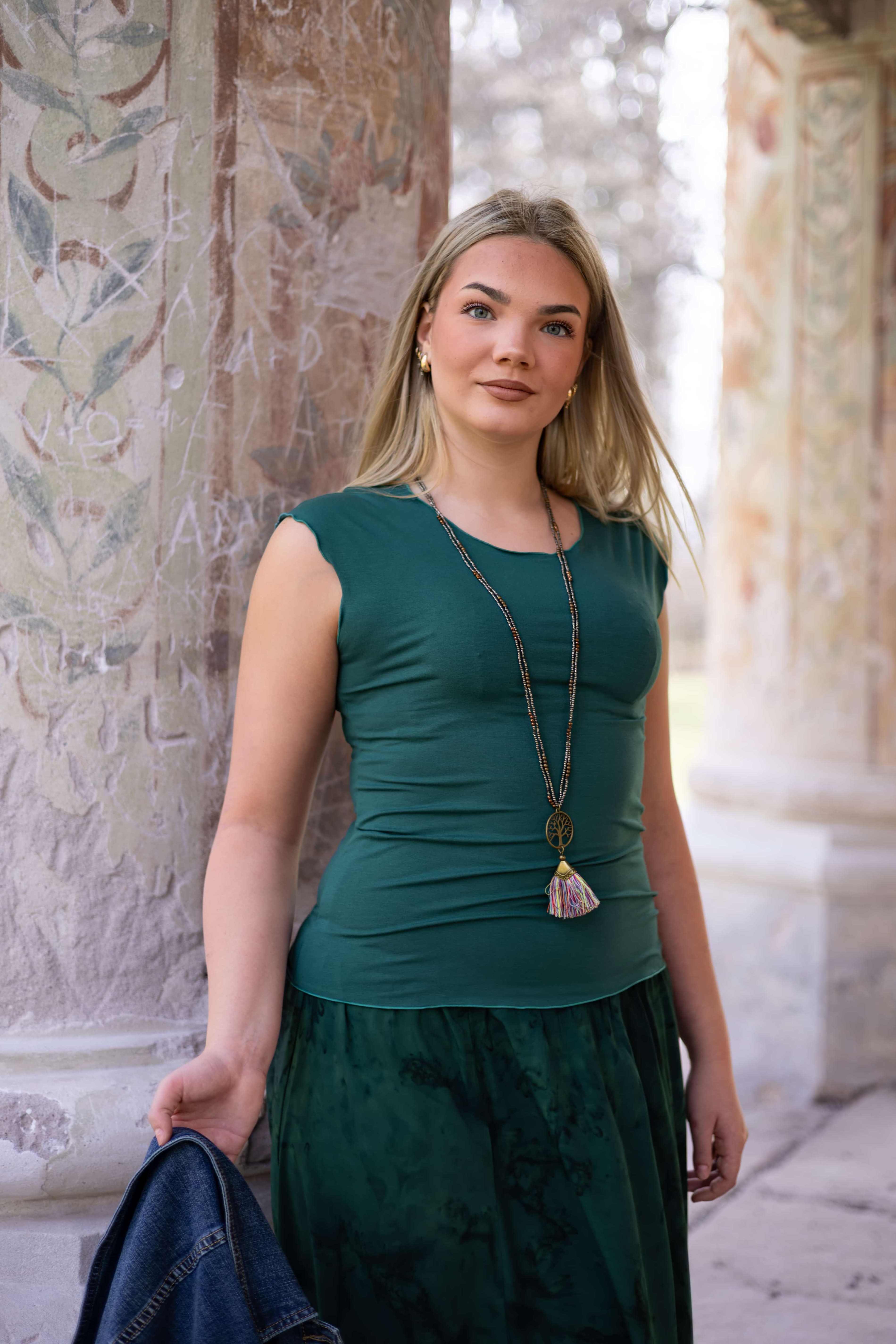 Triko Sunny je vyrobené z příjemné viskózy, stejně jako naše braletky, legíny, trika s ¾ rukávem a lemy u pohodlným dlouhých i krátkých sukní.