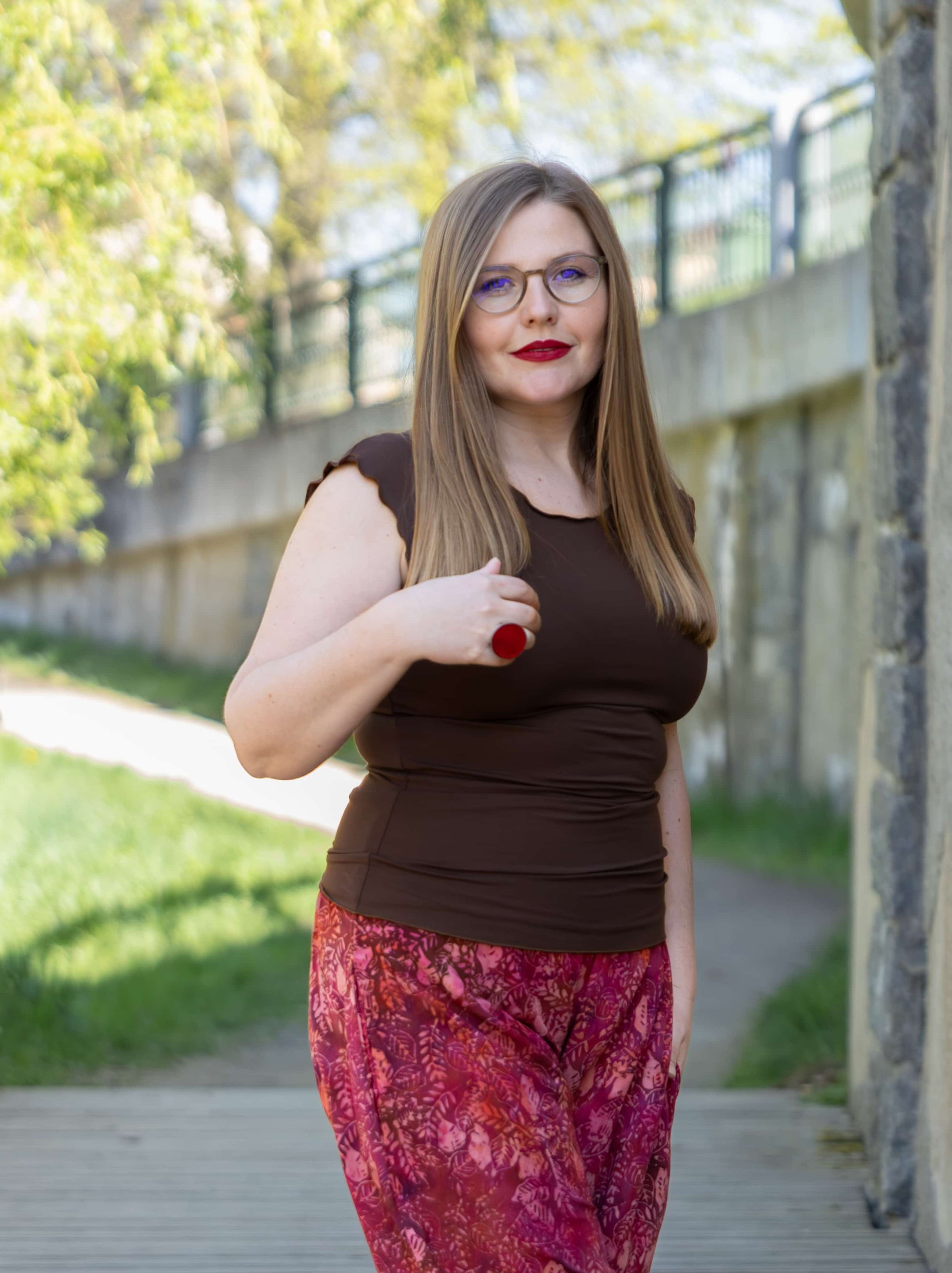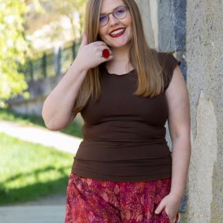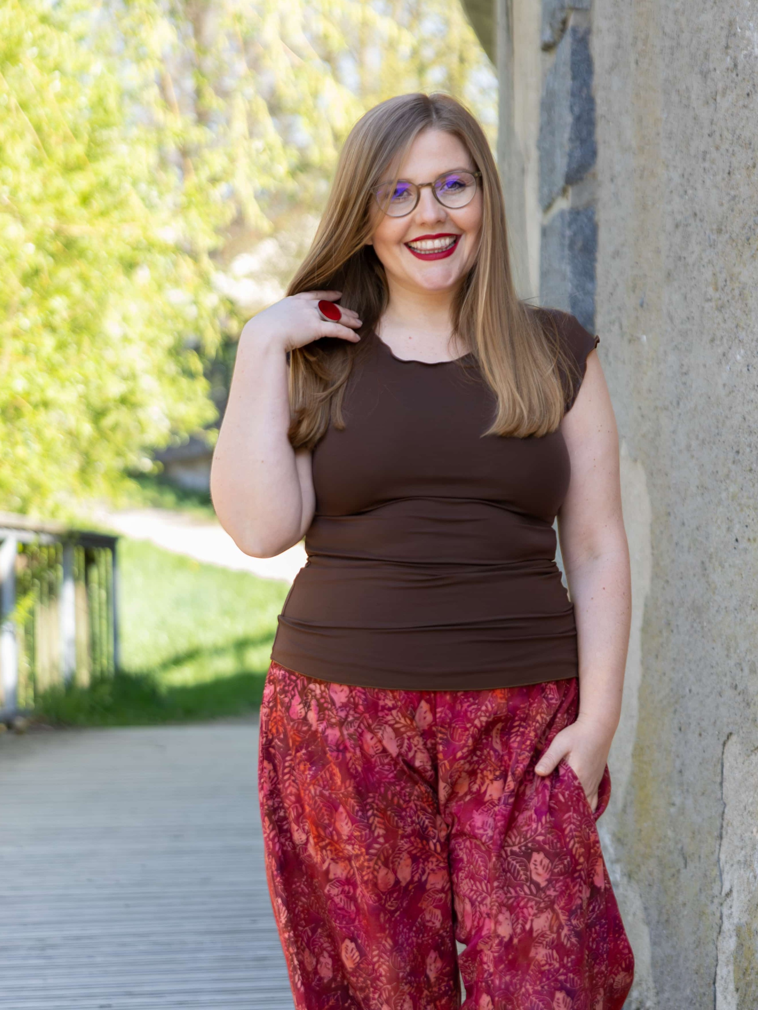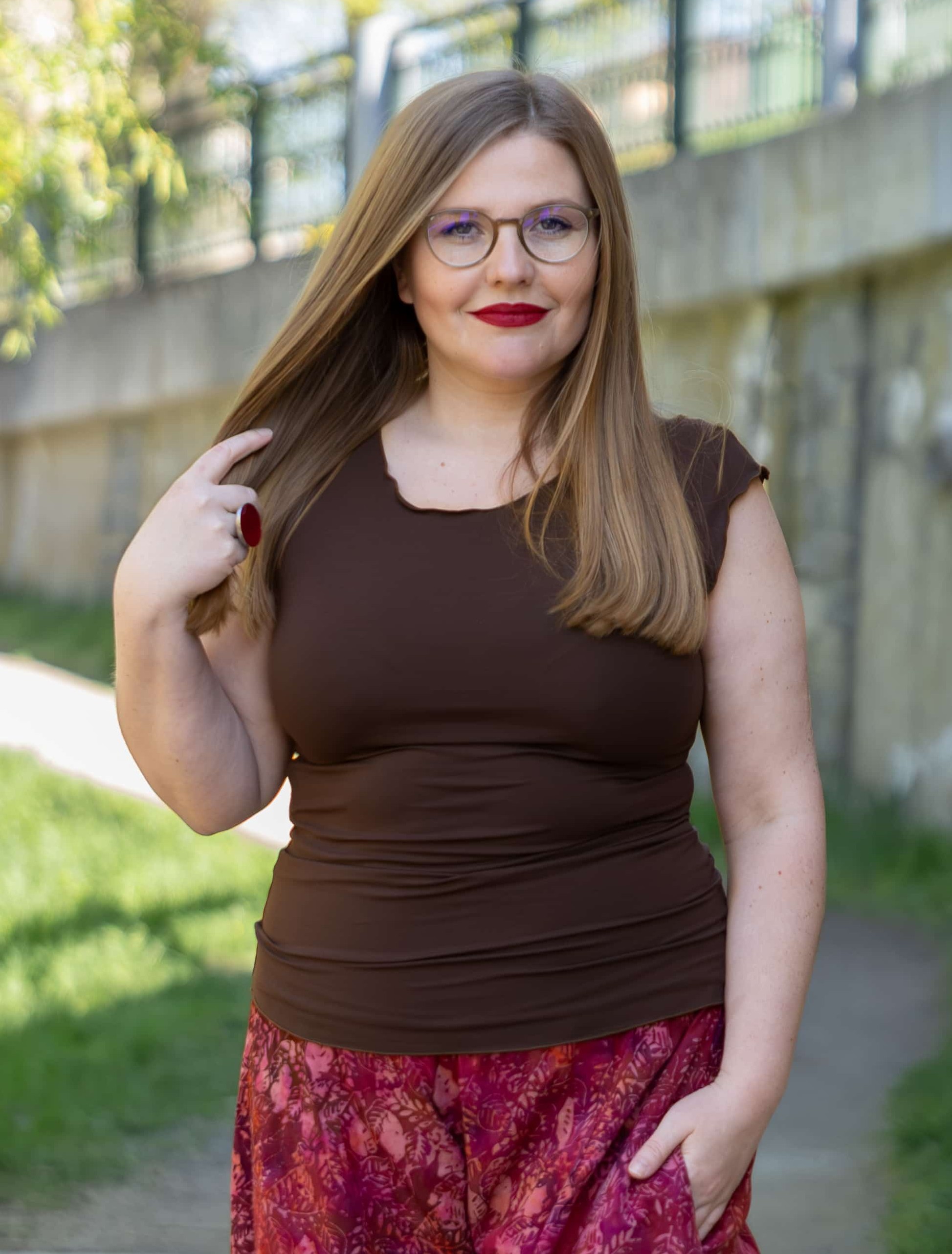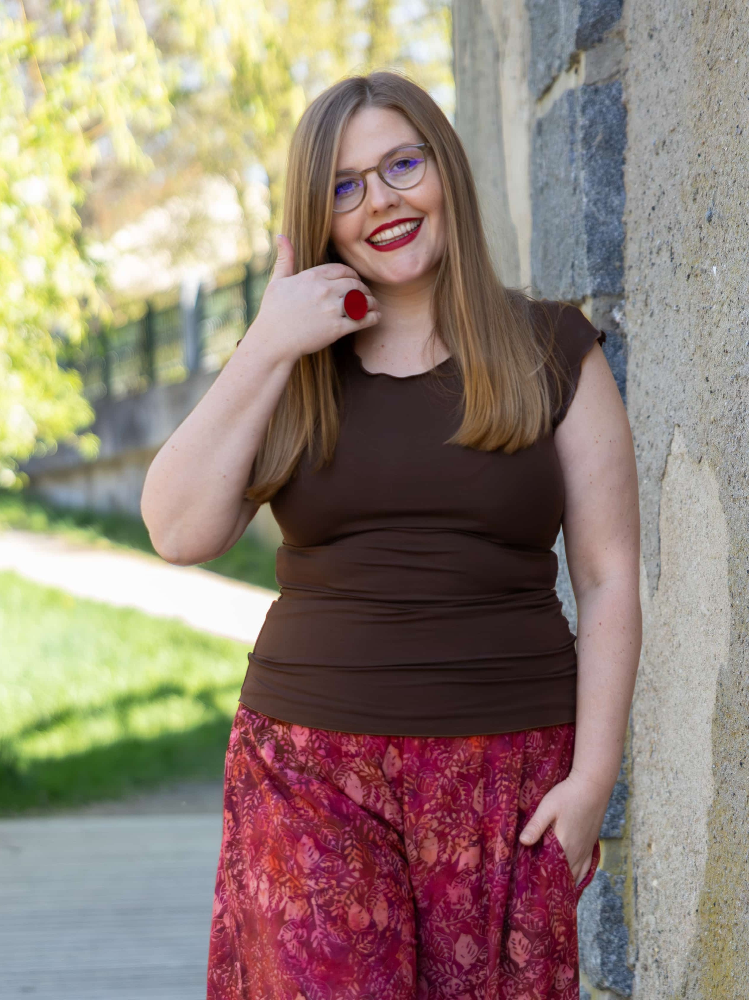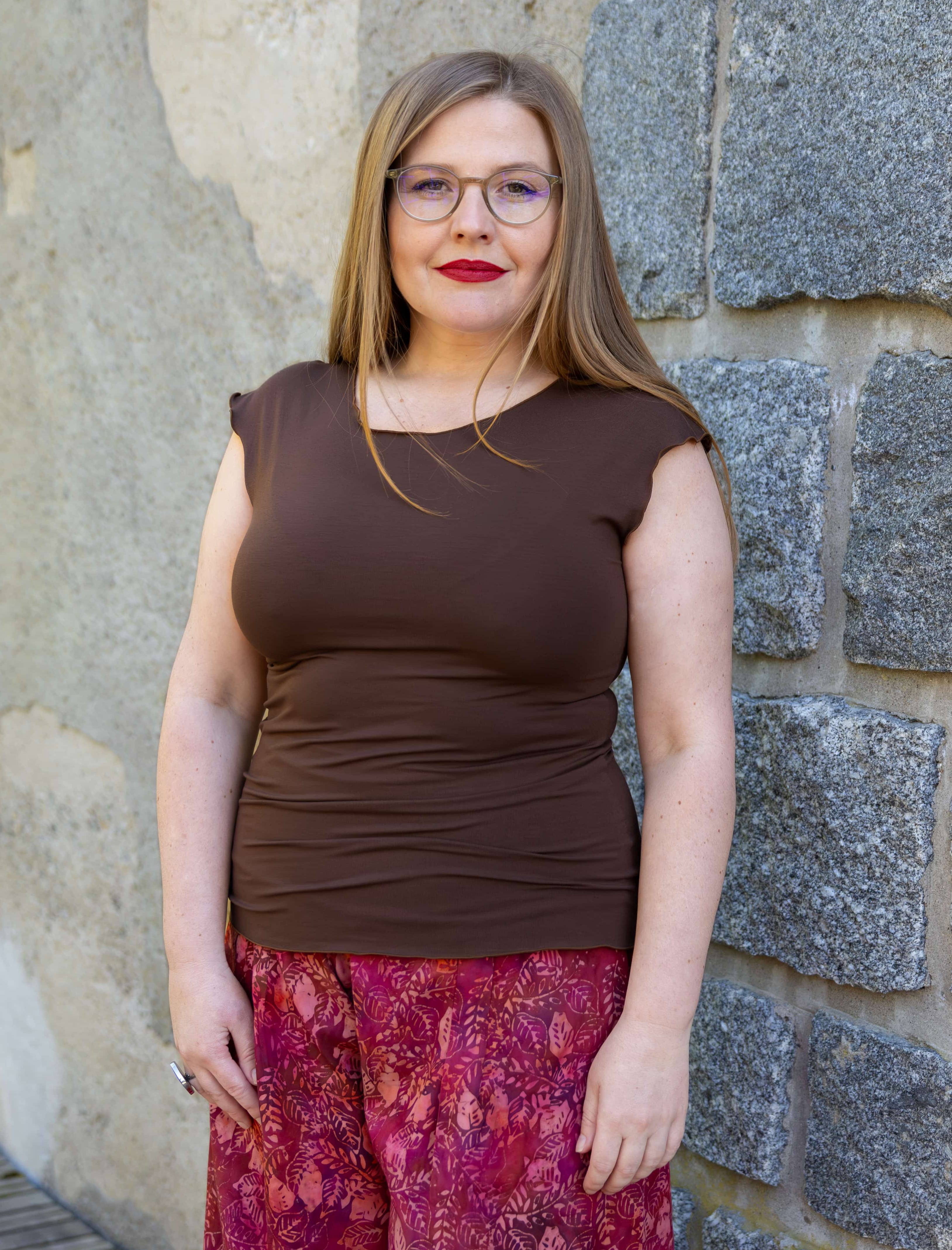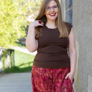 Triko Sunny je vyrobené z příjemné viskózy, stejně jako naše braletky, legíny, trika s ¾ rukávem a lemy u pohodlným dlouhých i krátkých sukní.