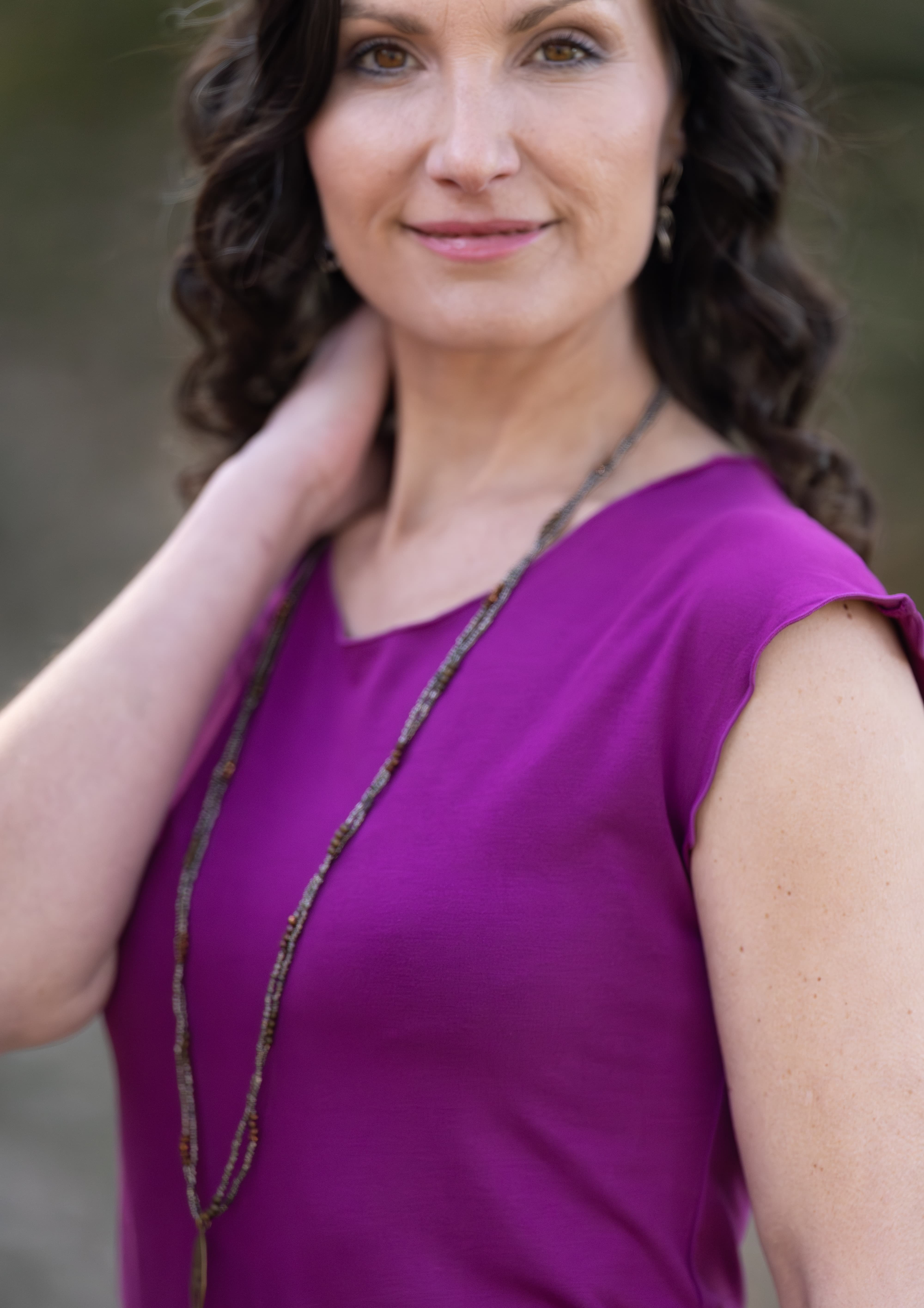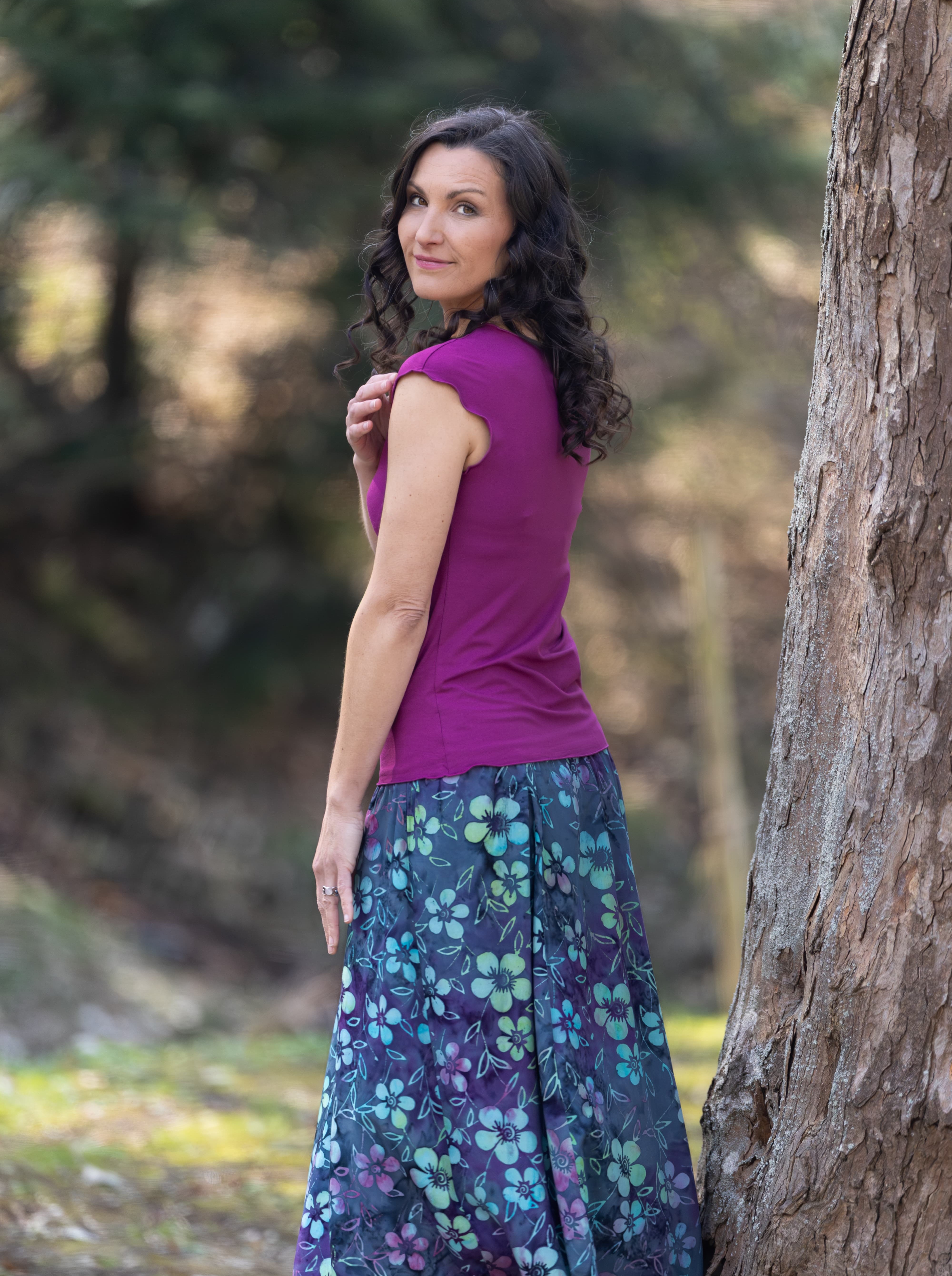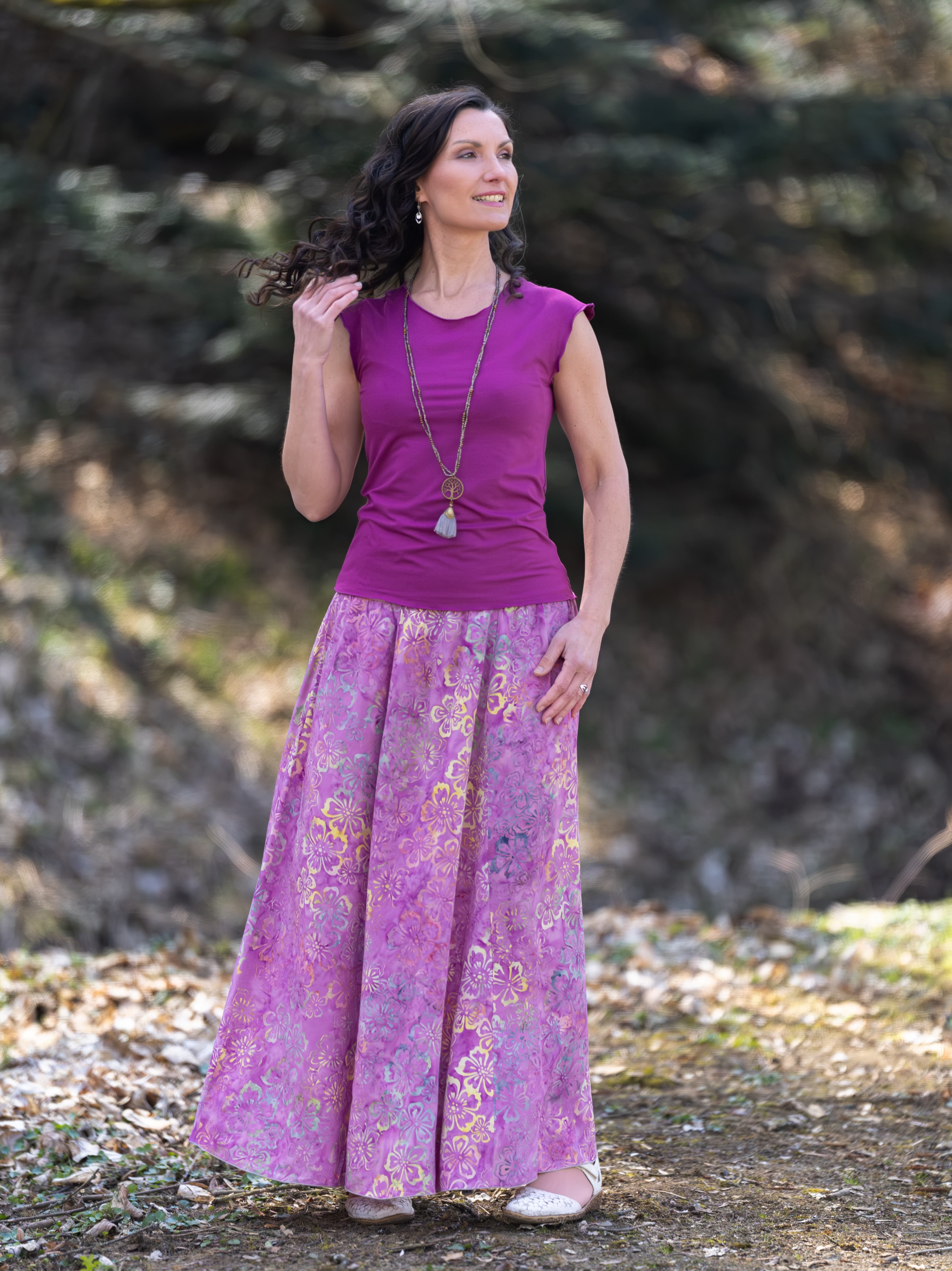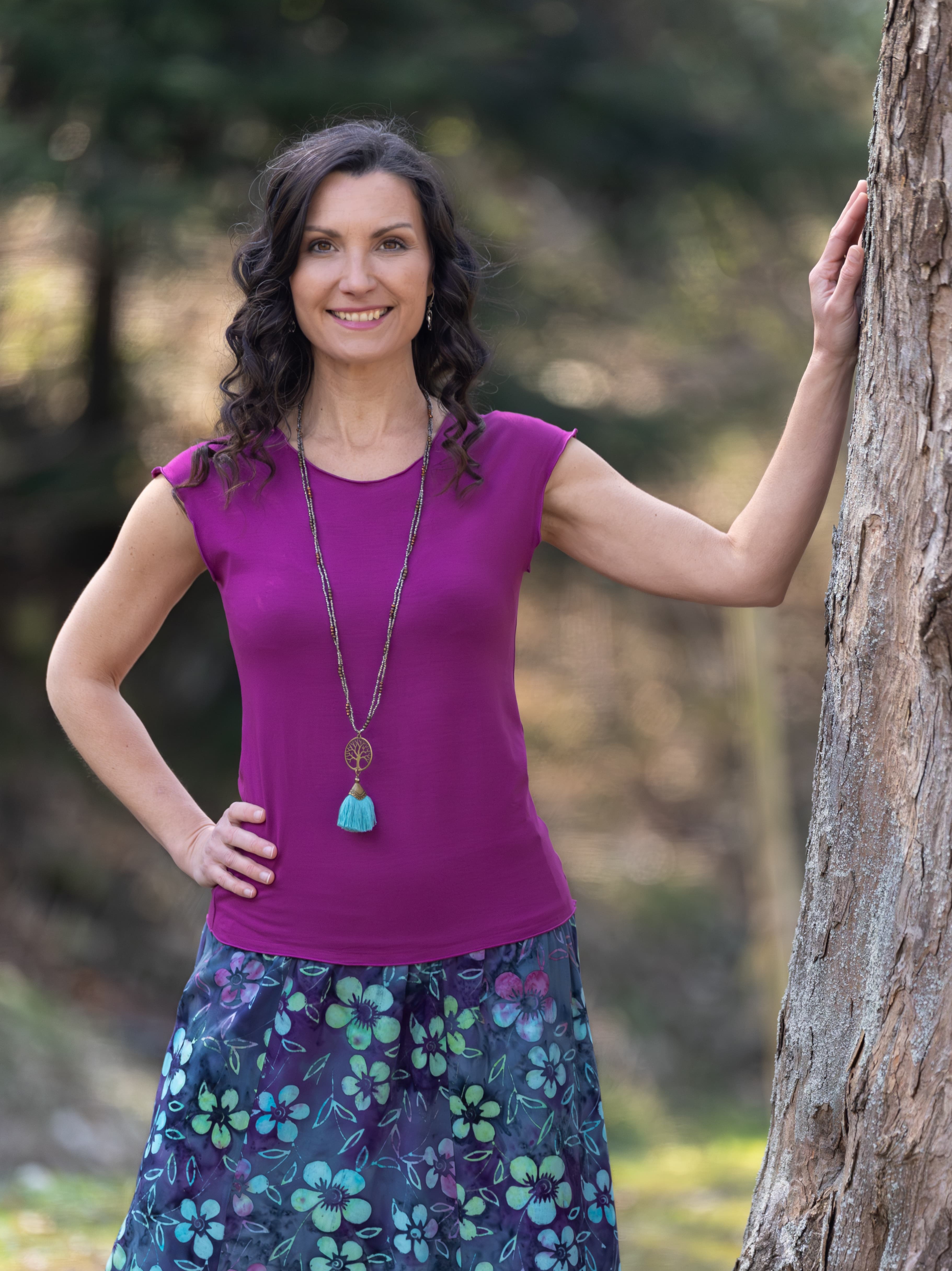 Triko Sunny je vyrobené z příjemné viskózy, stejně jako naše braletky, legíny, trika s ¾ rukávem a lemy u pohodlným dlouhých i krátkých sukní.