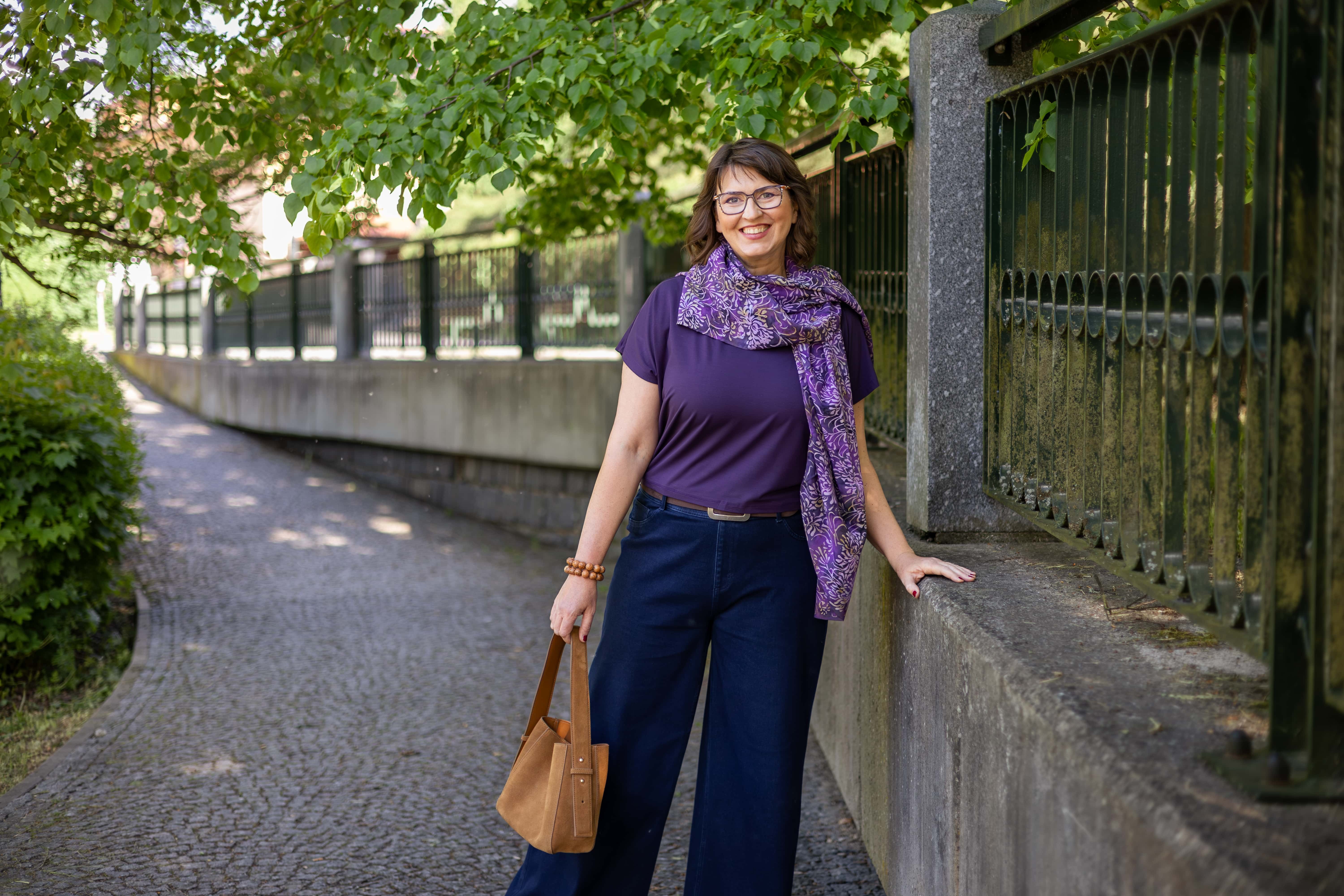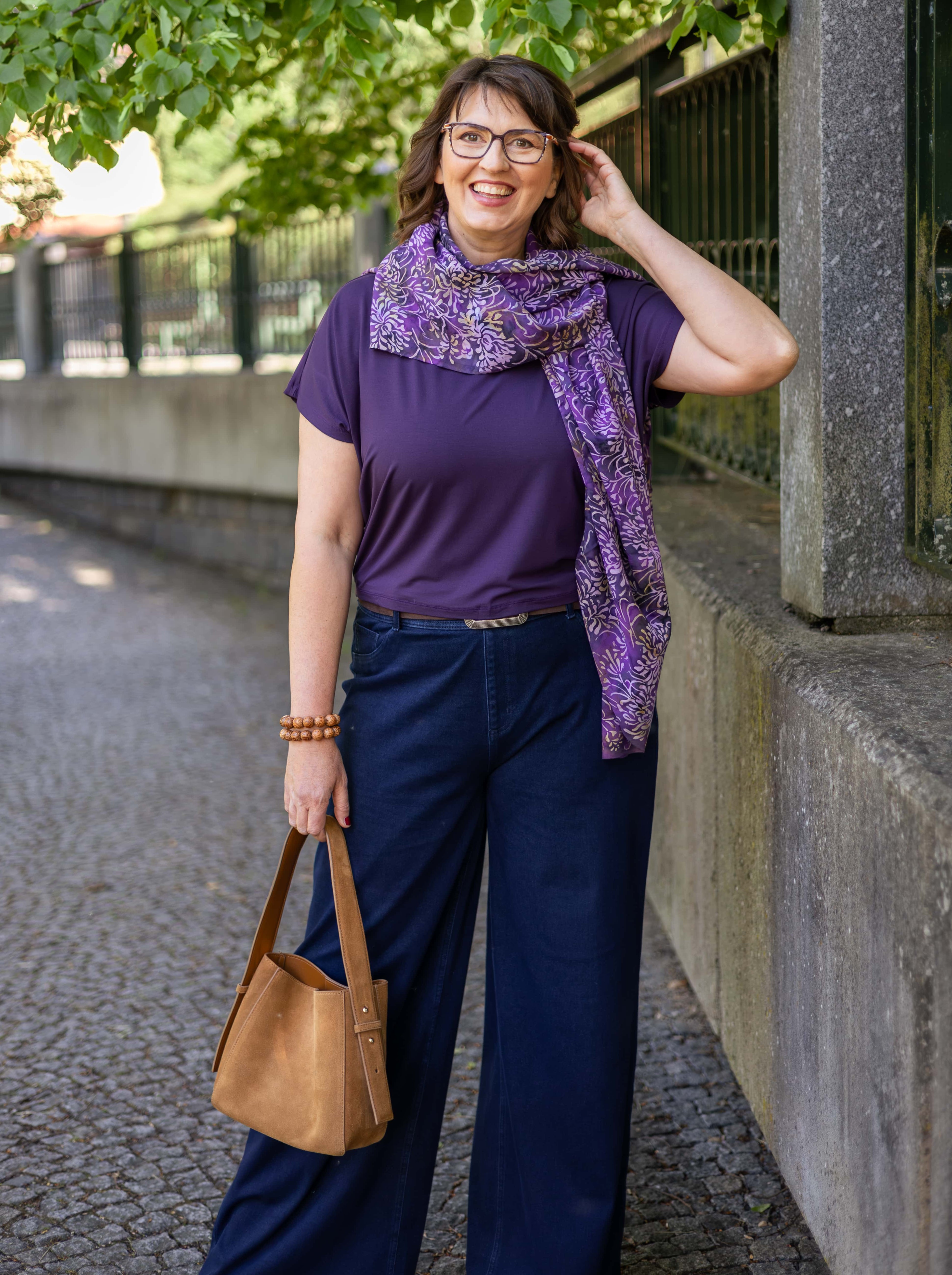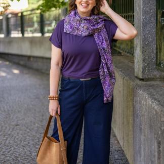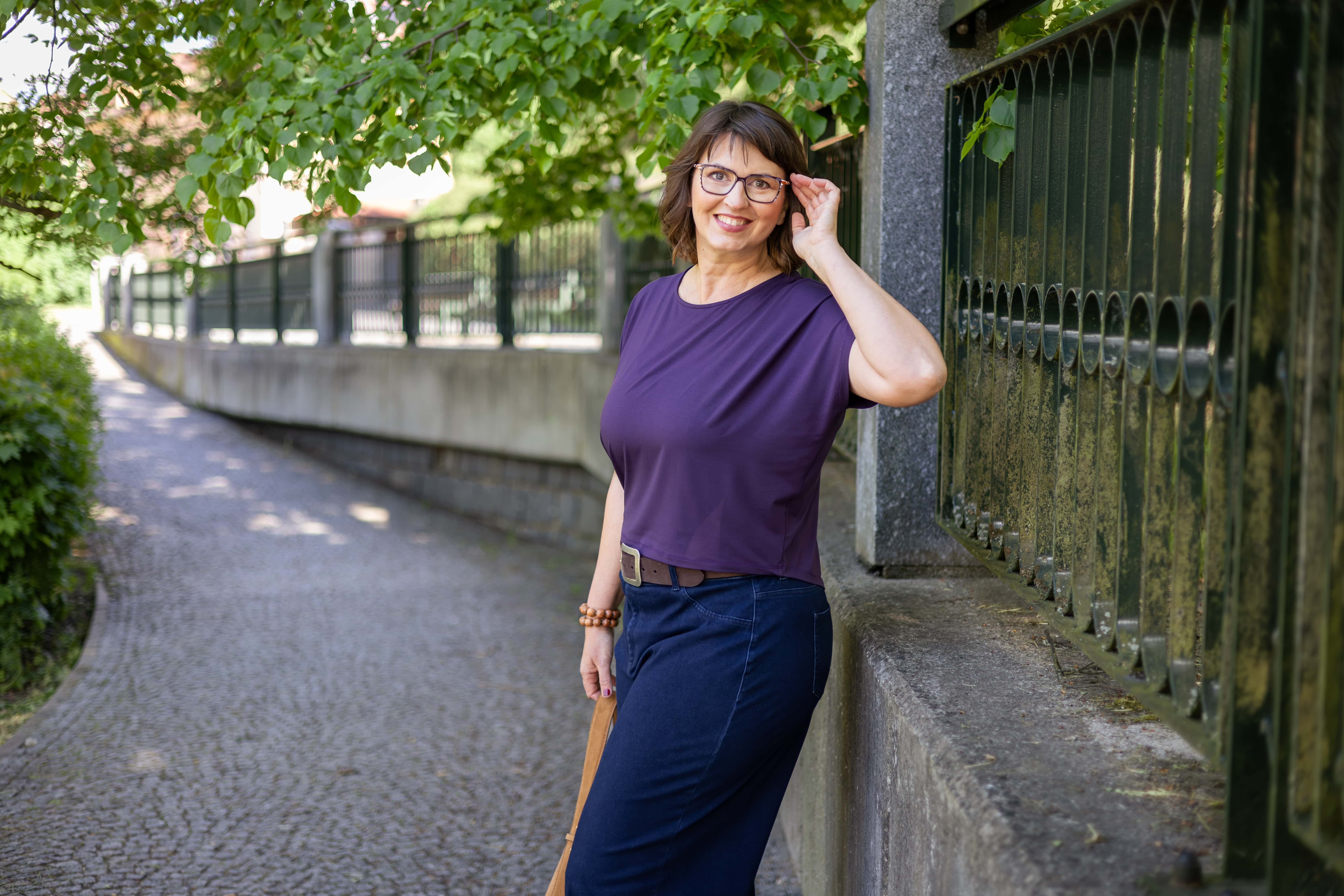 Kratší střih typu crop top s kulatým výstřihem a vzdušnými netopýřími rukávy se perfektně hodí na jaro, léto i teplý podzim.