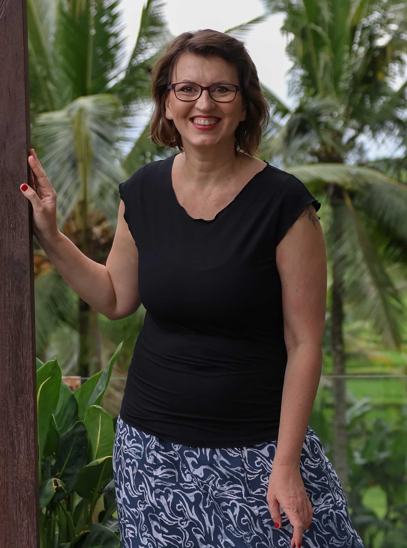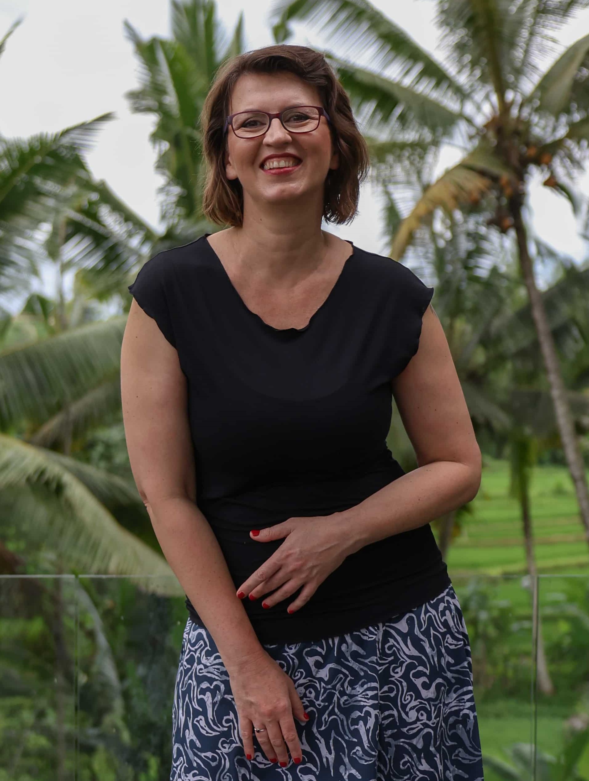 Triko Sunny je vyrobené z příjemné viskózy, stejně jako naše braletky, legíny, trika s ¾ rukávem a lemy u pohodlným dlouhých i krátkých sukní.