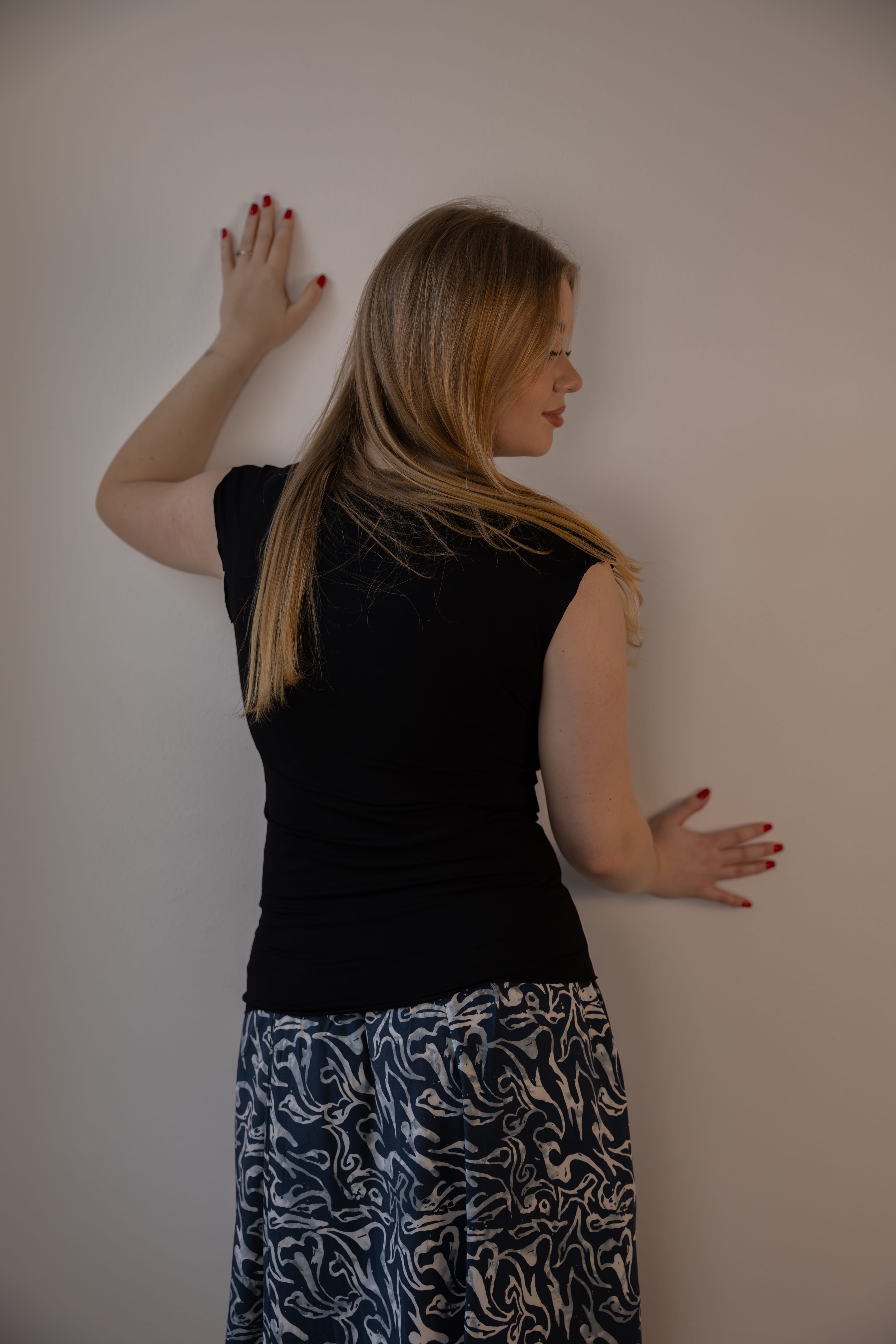 Vyzkoušejte si také, jak vám bude tričko slušet výstřihem dozadu. Na zádech zvýrazní linii šíje a vepředu vytvoří elegantní lodičkový výstřih.