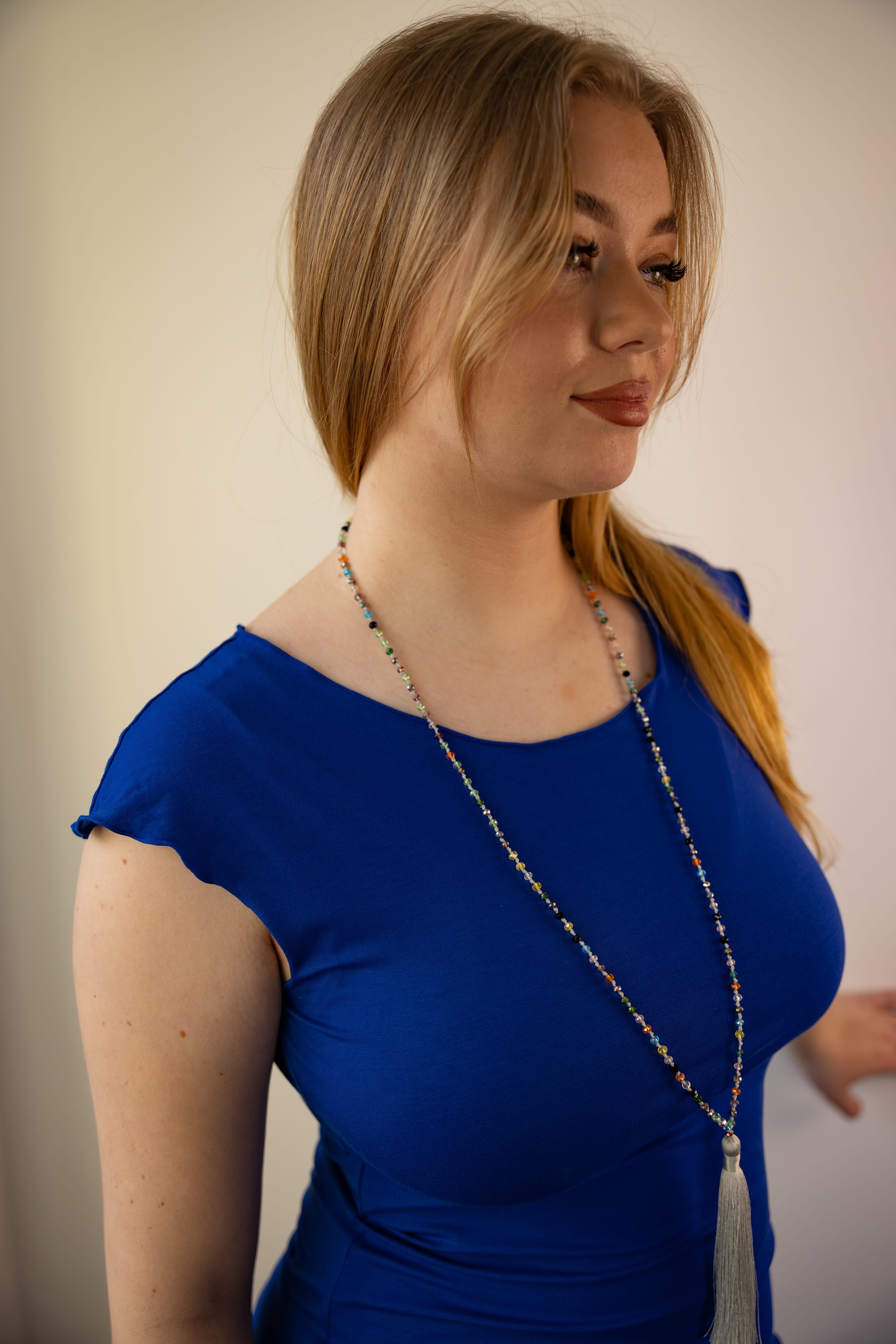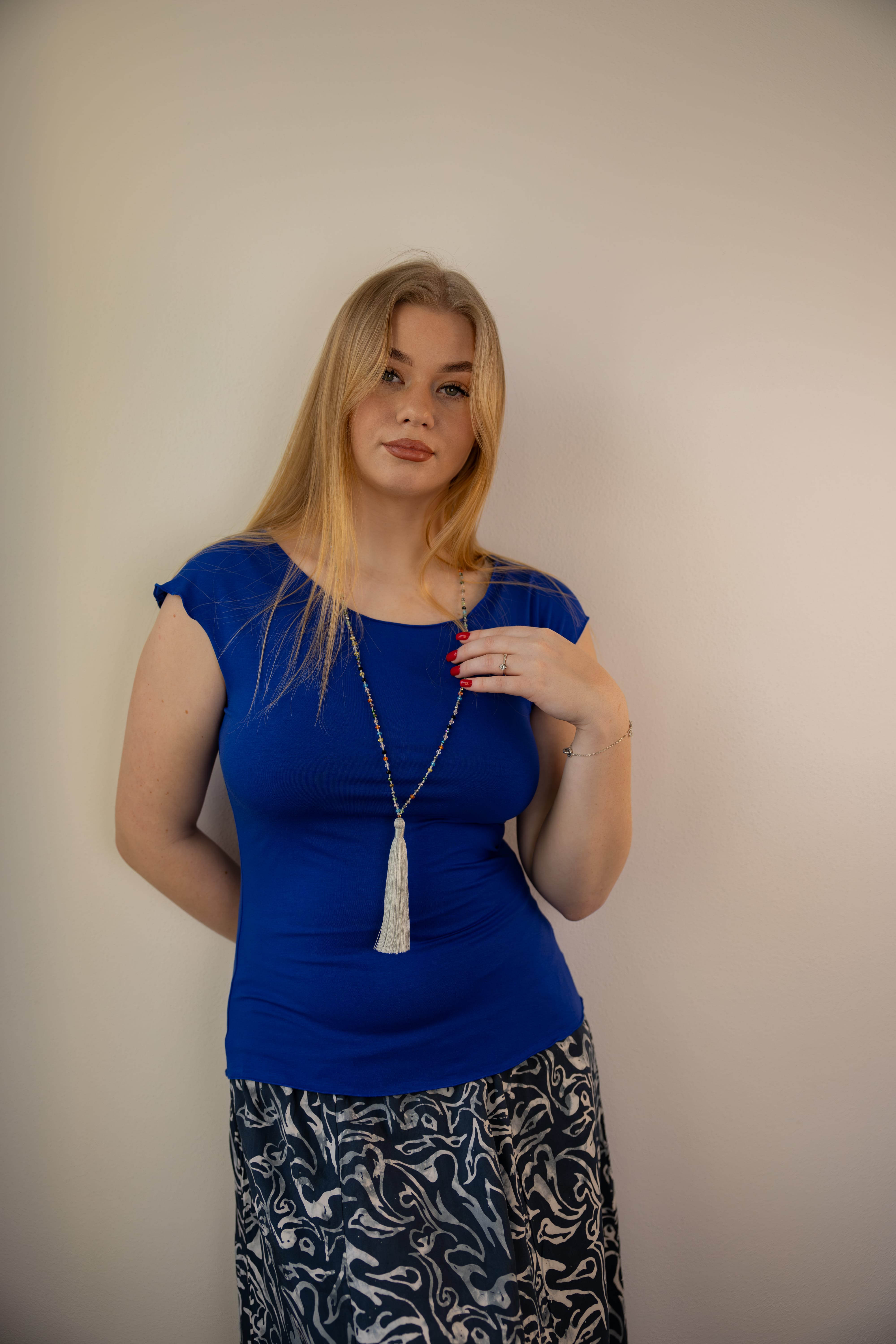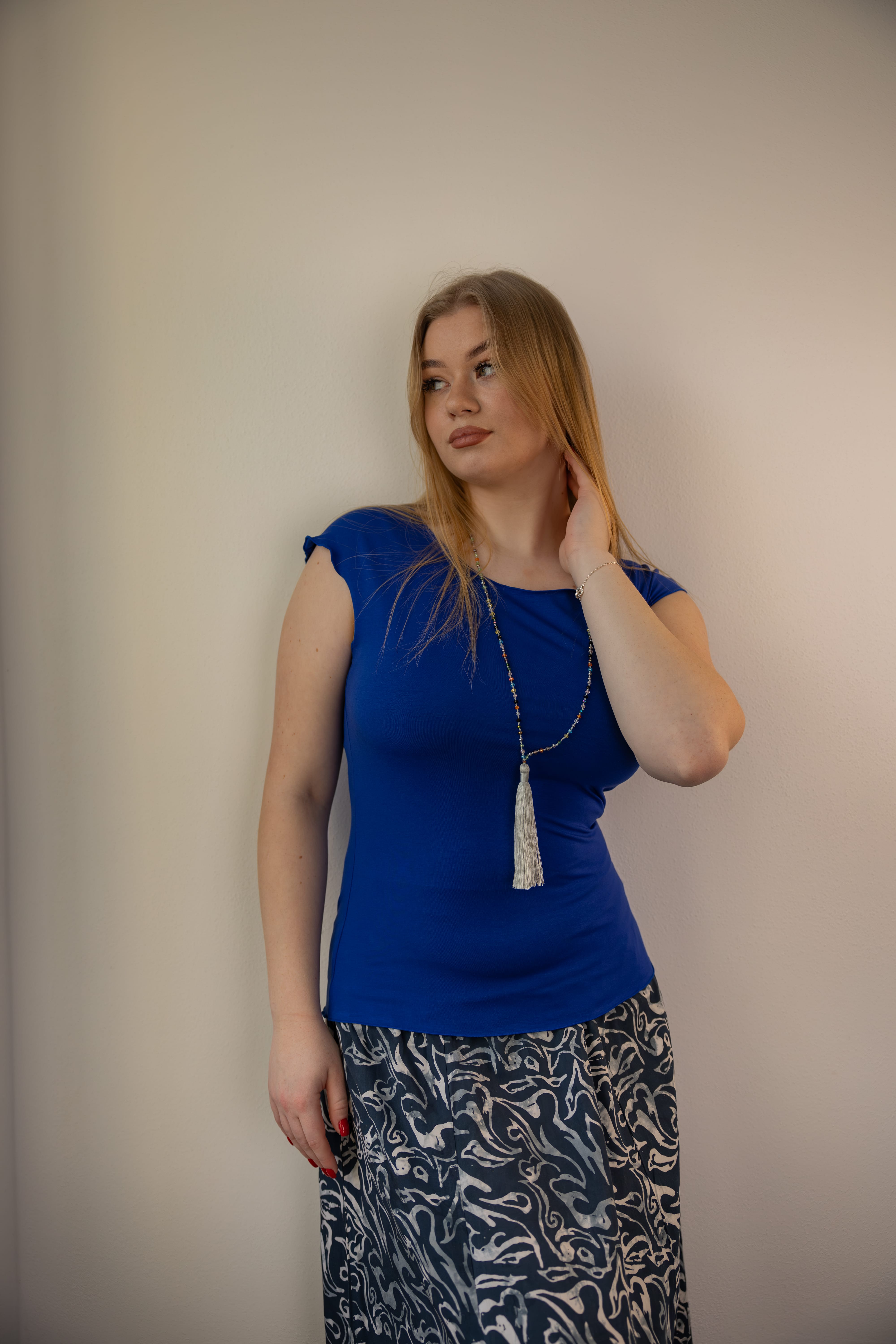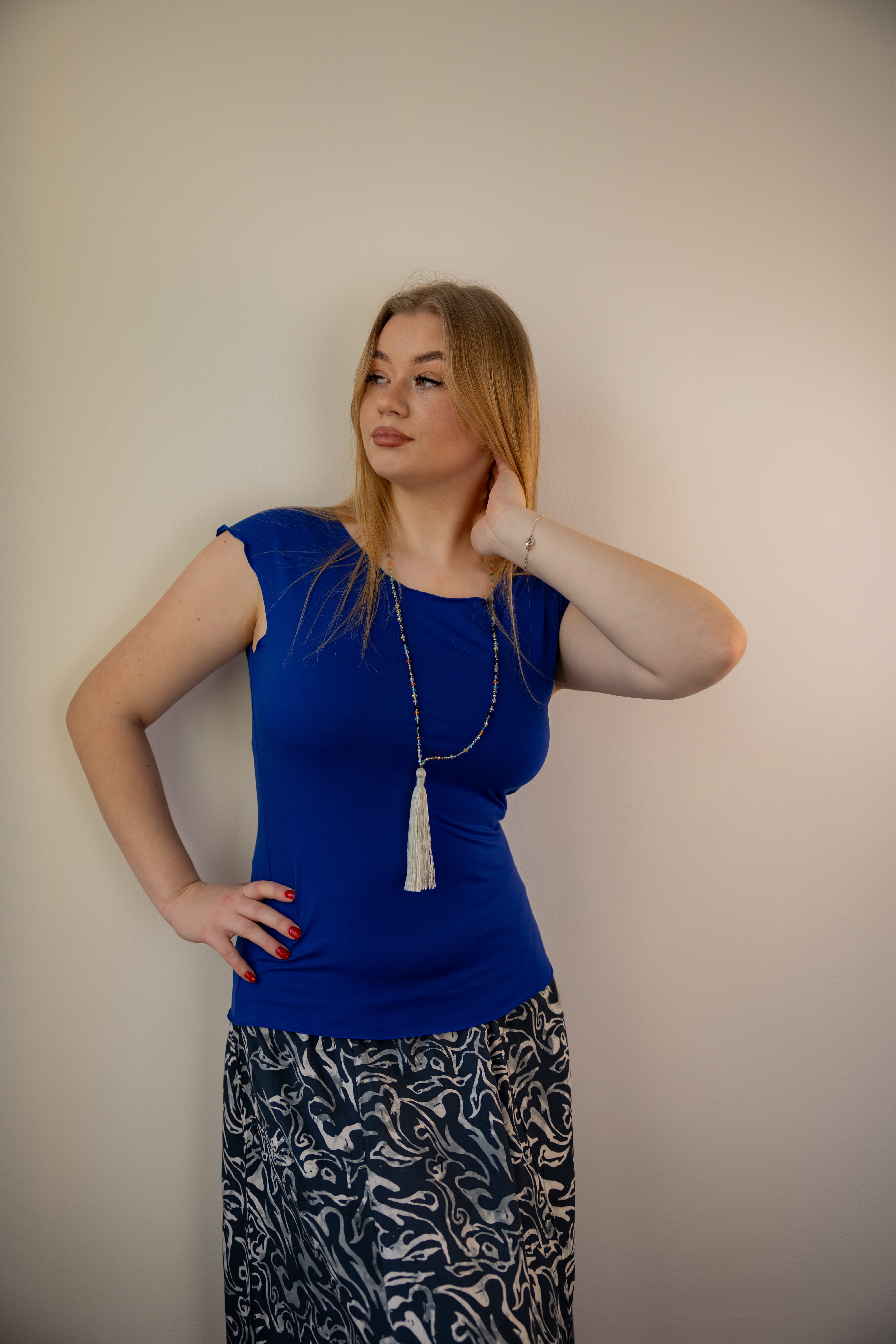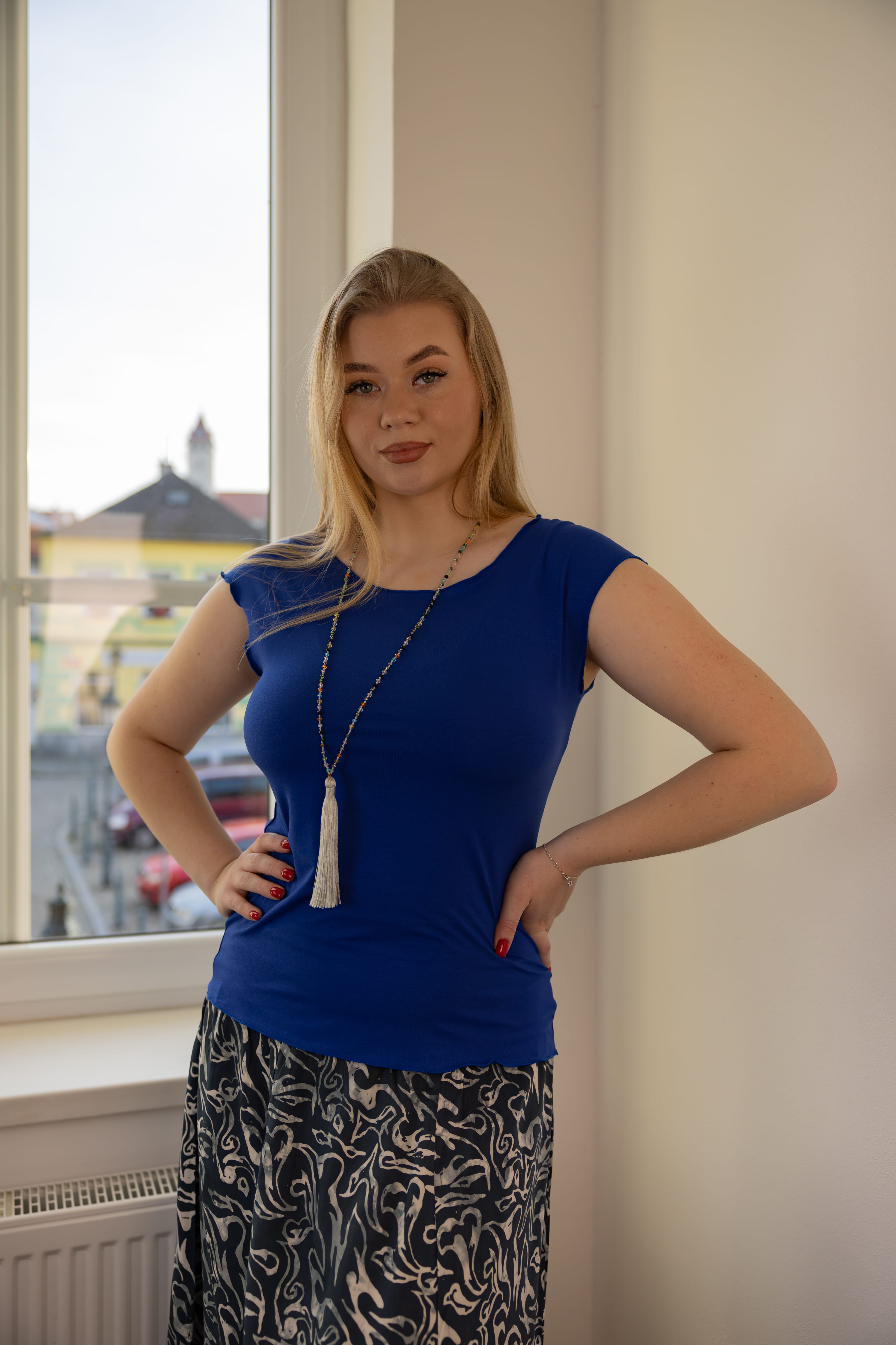 Triko Sunny je vyrobené z příjemné viskózy, stejně jako naše braletky, legíny, trika s ¾ rukávem a lemy u pohodlným dlouhých i krátkých sukní.