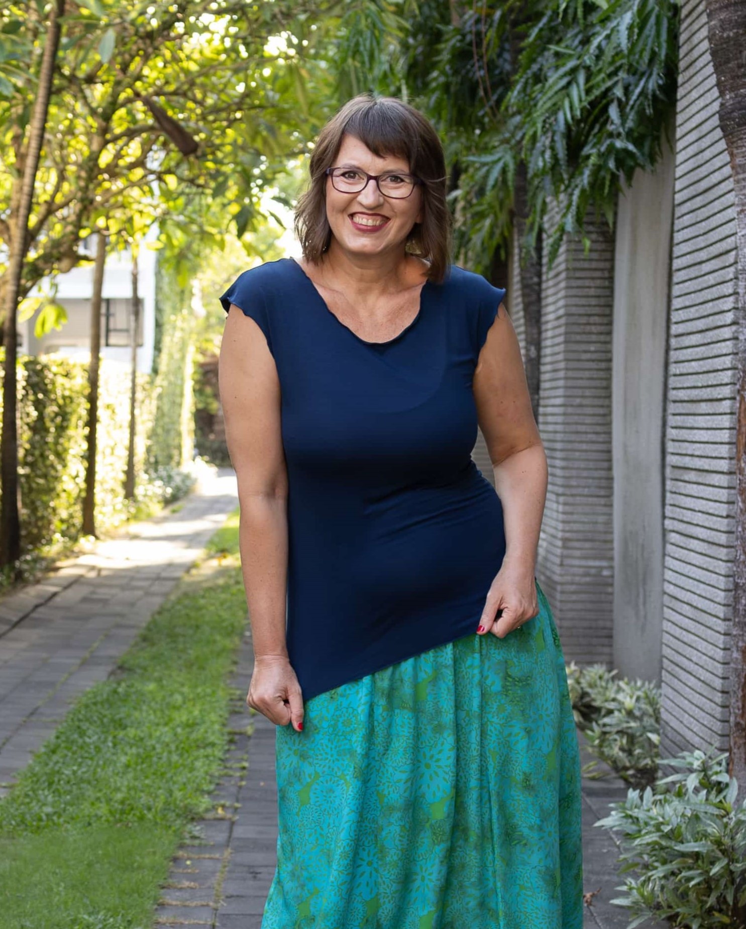 Triko Sunny je vyrobené z příjemné viskózy, stejně jako naše braletky, legíny, trika s ¾ rukávem a lemy u pohodlným dlouhých i krátkých sukní.
