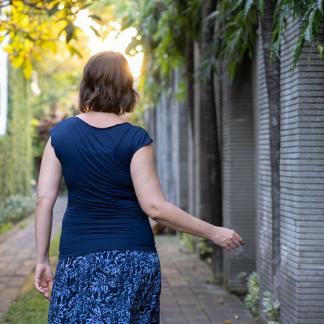 Vyzkoušejte si také, jak vám bude tričko slušet výstřihem dozadu. Na zádech zvýrazní linii šíje a vepředu vytvoří elegantní lodičkový výstřih.