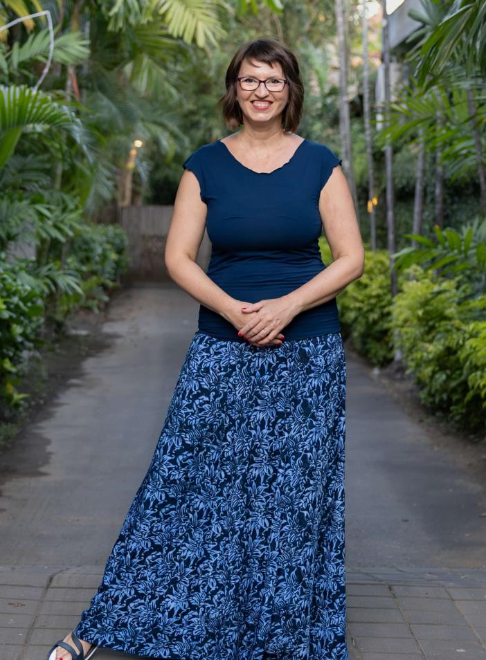 Triko Sunny je vyrobené z příjemné viskózy, stejně jako naše braletky, legíny, trika s ¾ rukávem a lemy u pohodlným dlouhých i krátkých sukní.