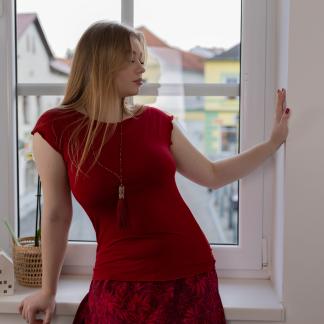 Triko Sunny je vyrobené z příjemné viskózy, stejně jako naše braletky, legínytrika s ¾ rukávem a lemy u pohodlným dlouhých i krátkých sukní.