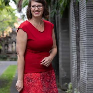 Vyzkoušejte si také, jak vám bude tričko slušet výstřihem dozadu. Na zádech zvýrazní linii šíje a vepředu vytvoří elegantní lodičkový výstřih.