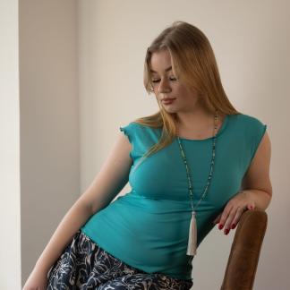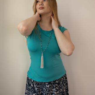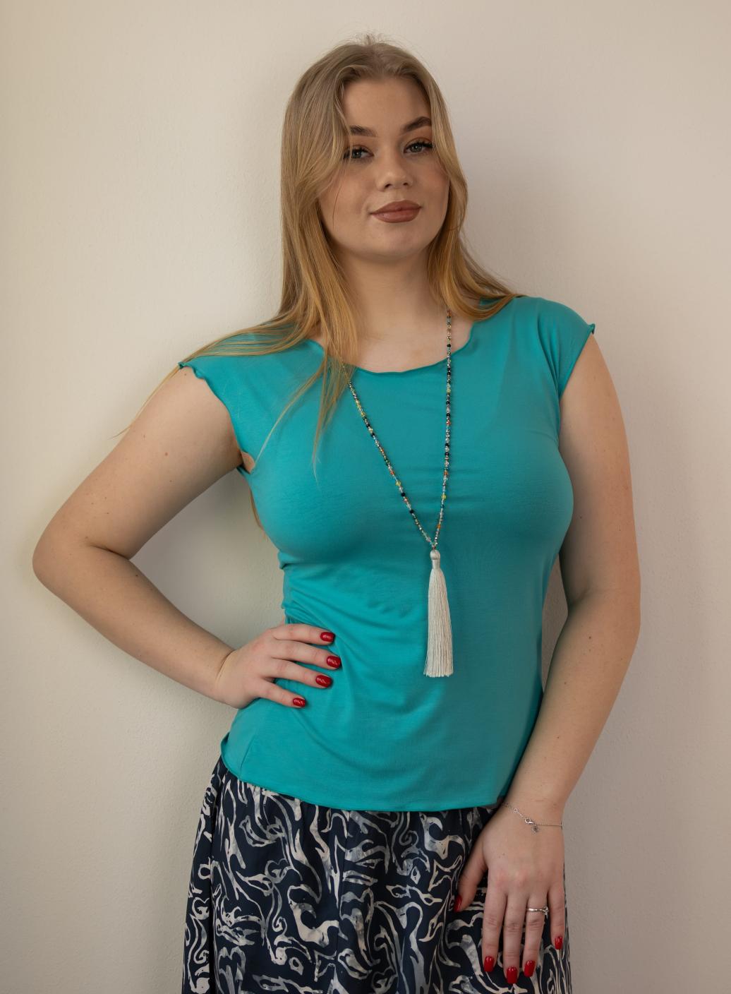 Triko Sunny je vyrobené z příjemné viskózy, stejně jako naše braletky, legínytrika s ¾ rukávem a lemy u pohodlným dlouhých i krátkých sukní.
