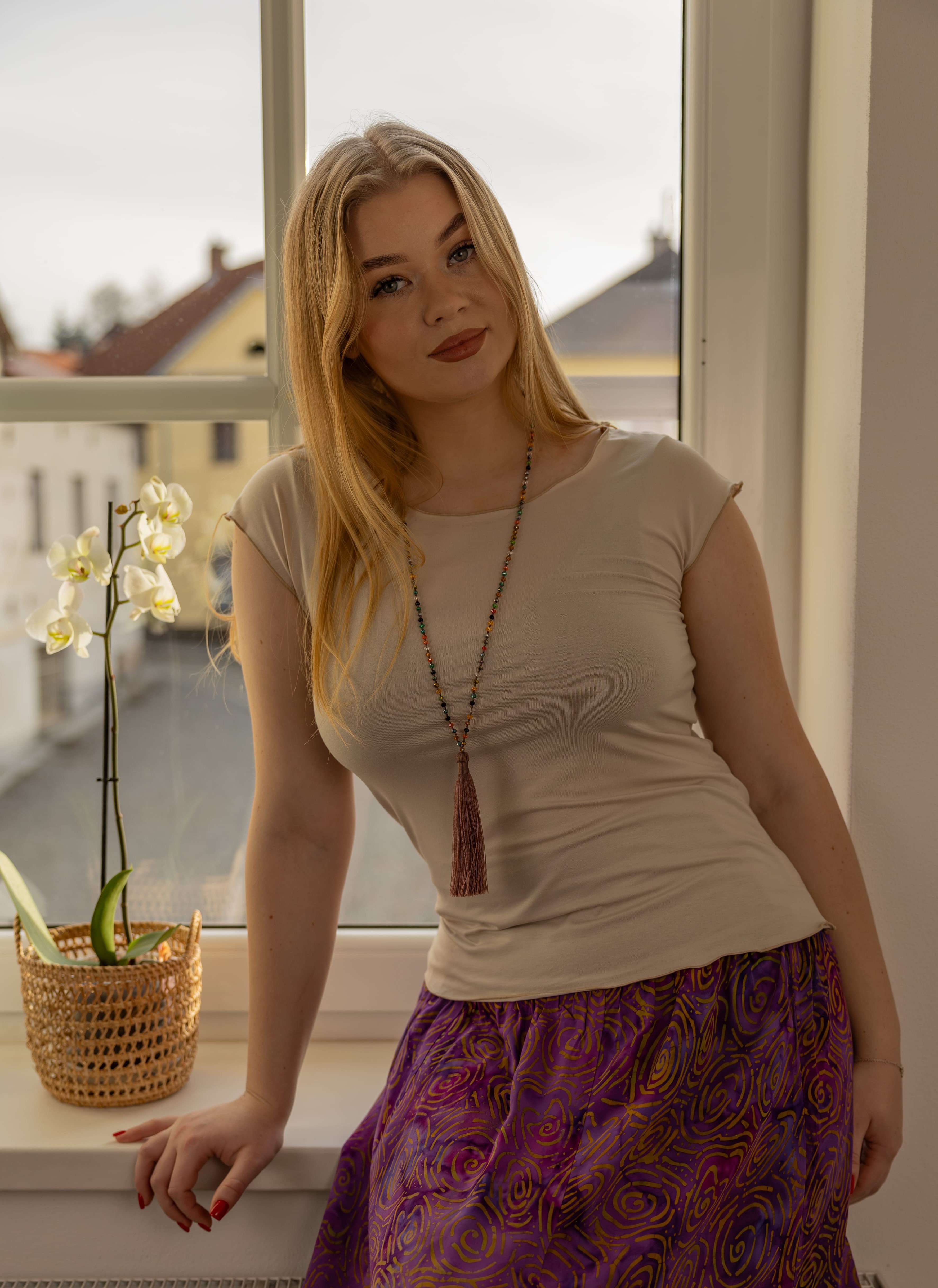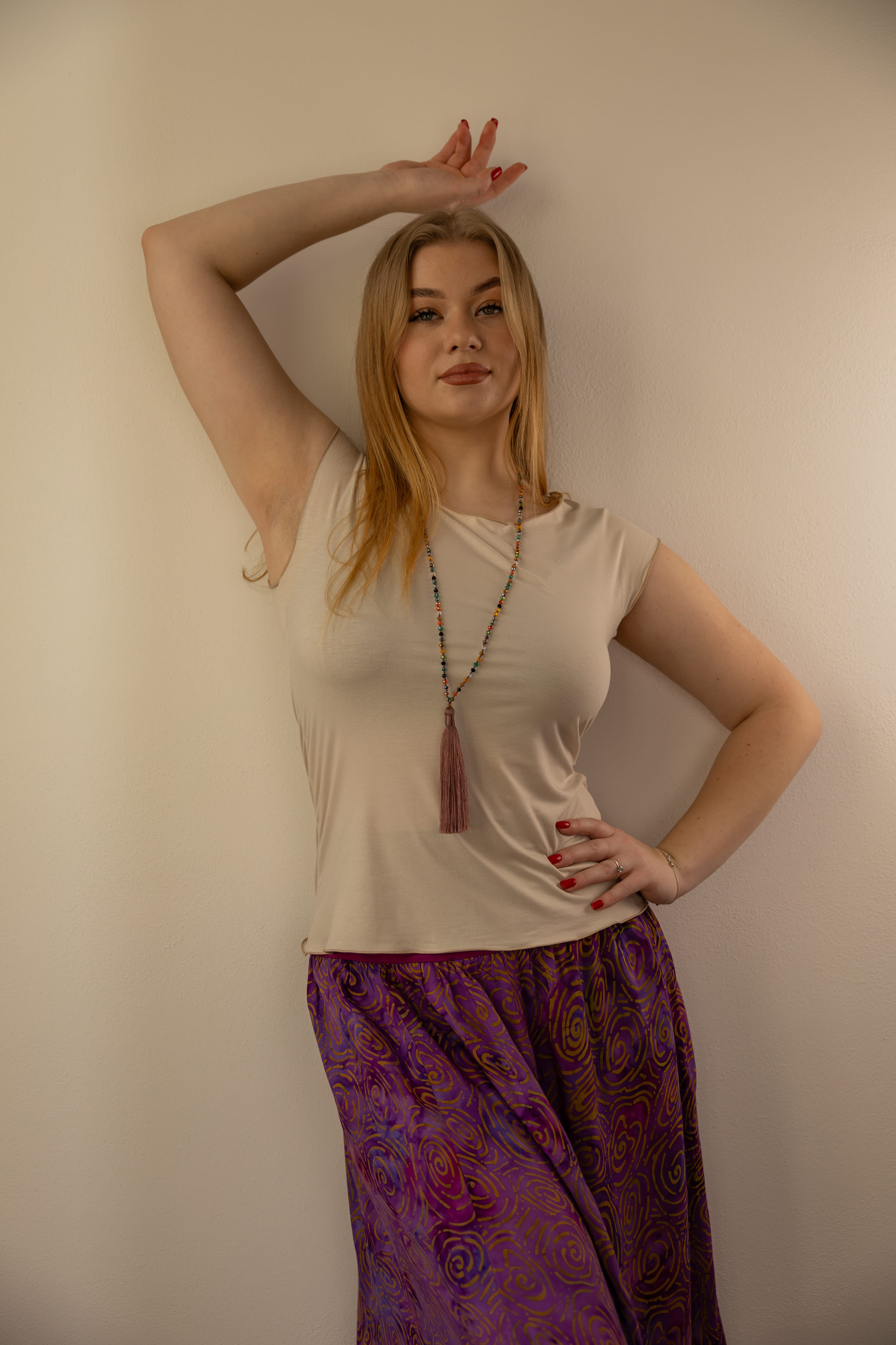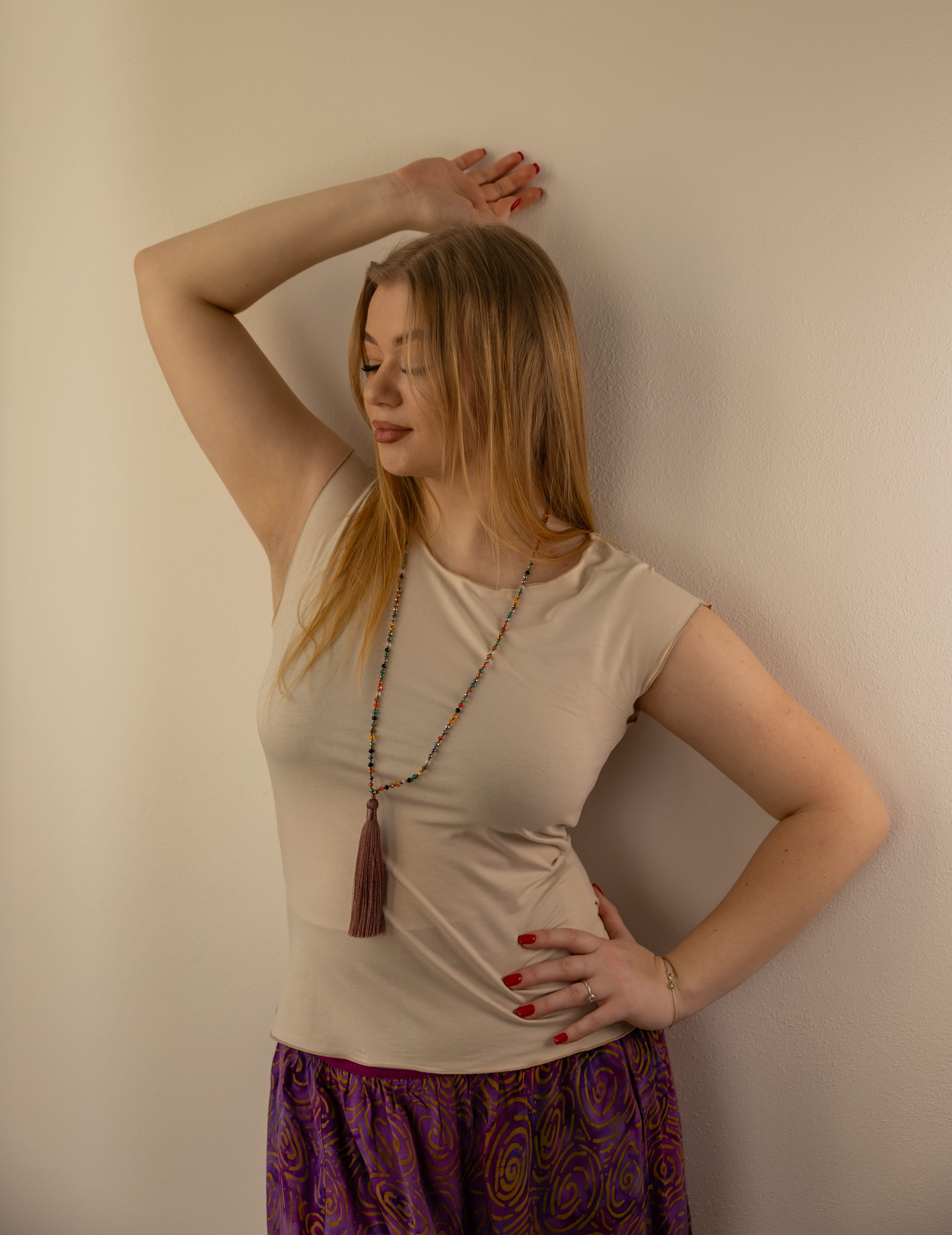 Triko Sunny je vyrobené z příjemné viskózy, stejně jako naše braletky, legíny, trika s ¾ rukávem a lemy u pohodlným dlouhých i krátkých sukní.